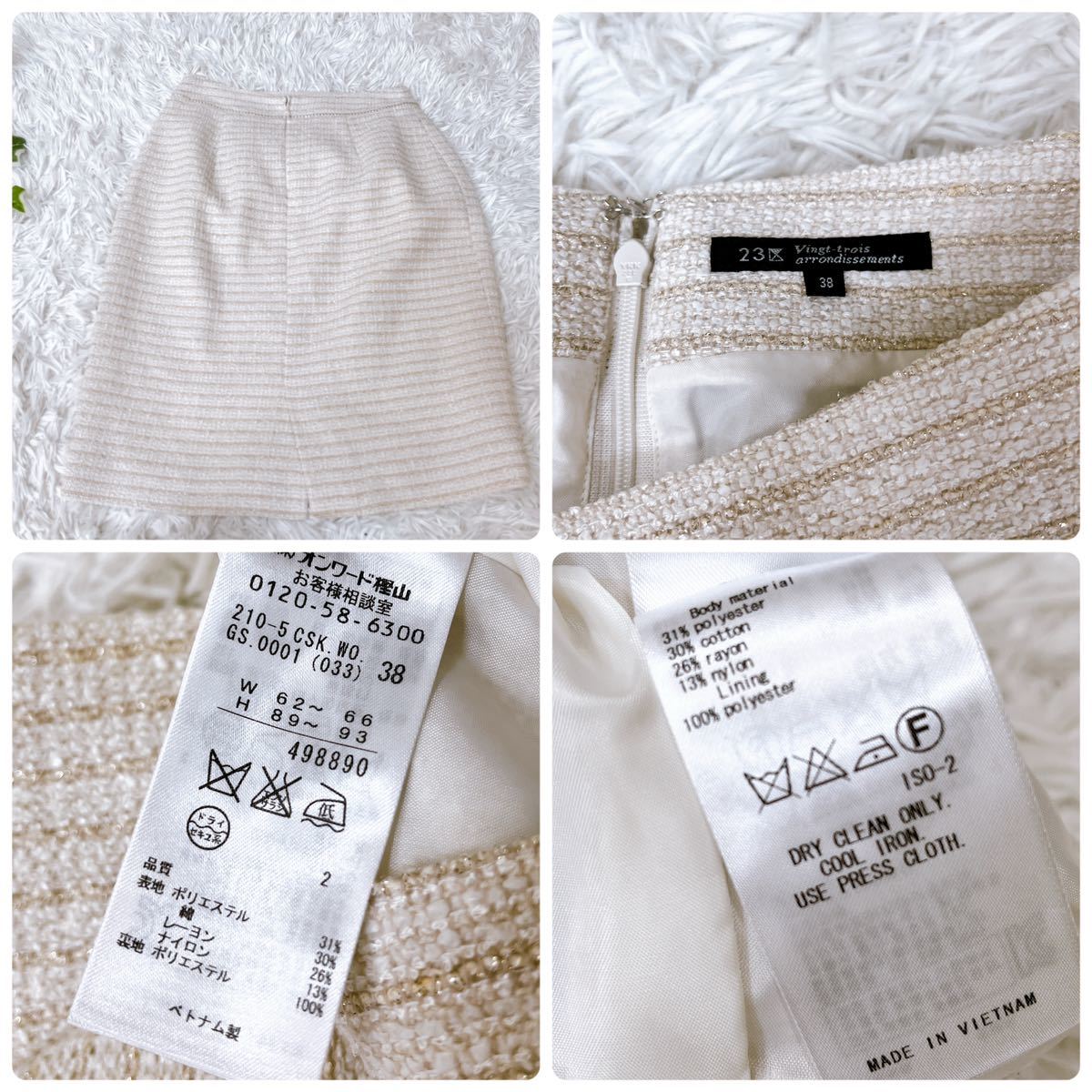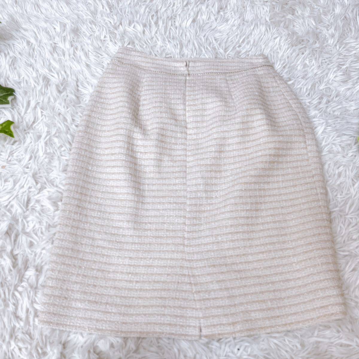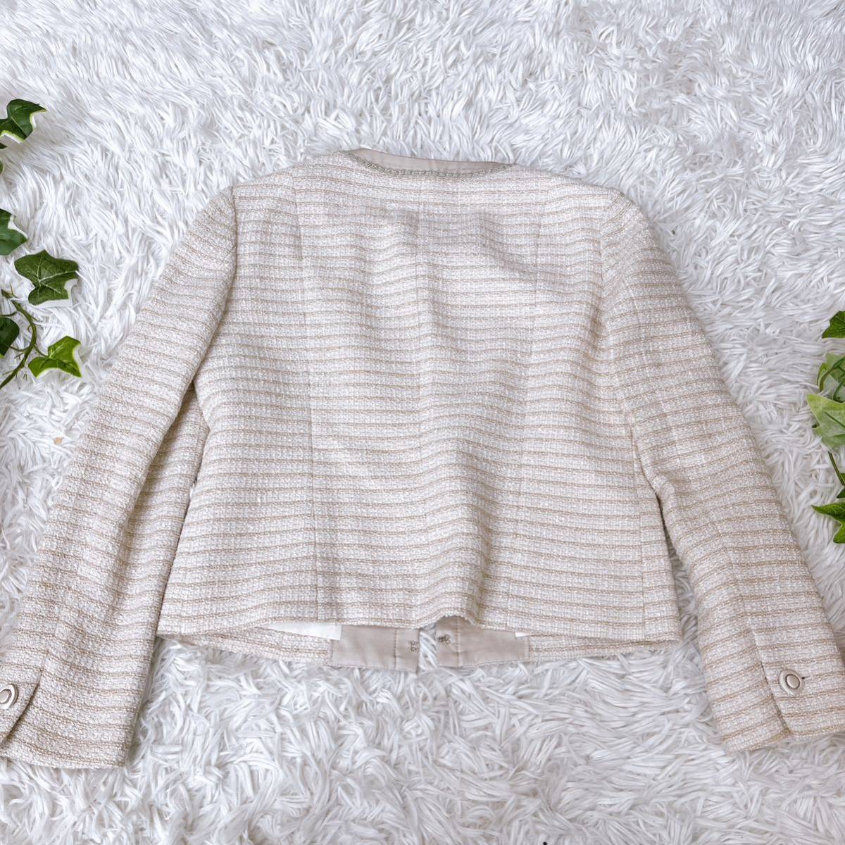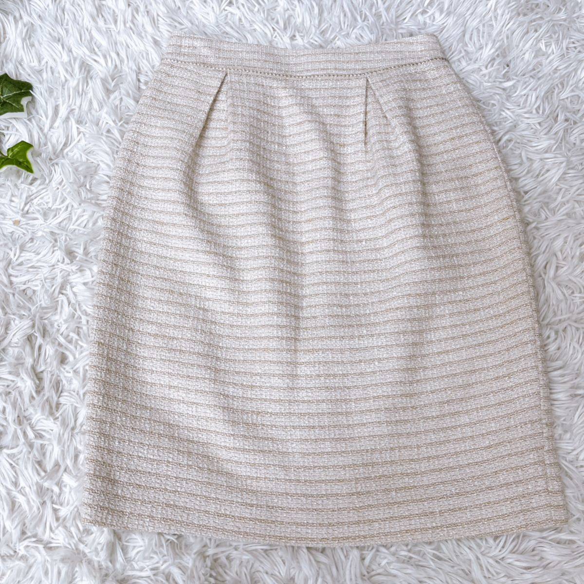 23区ツイードセットアップスカートスーツ上下 サイズ36 サイズ38 ベージュラメ入り ママスーツ ノーカラー ジャケット