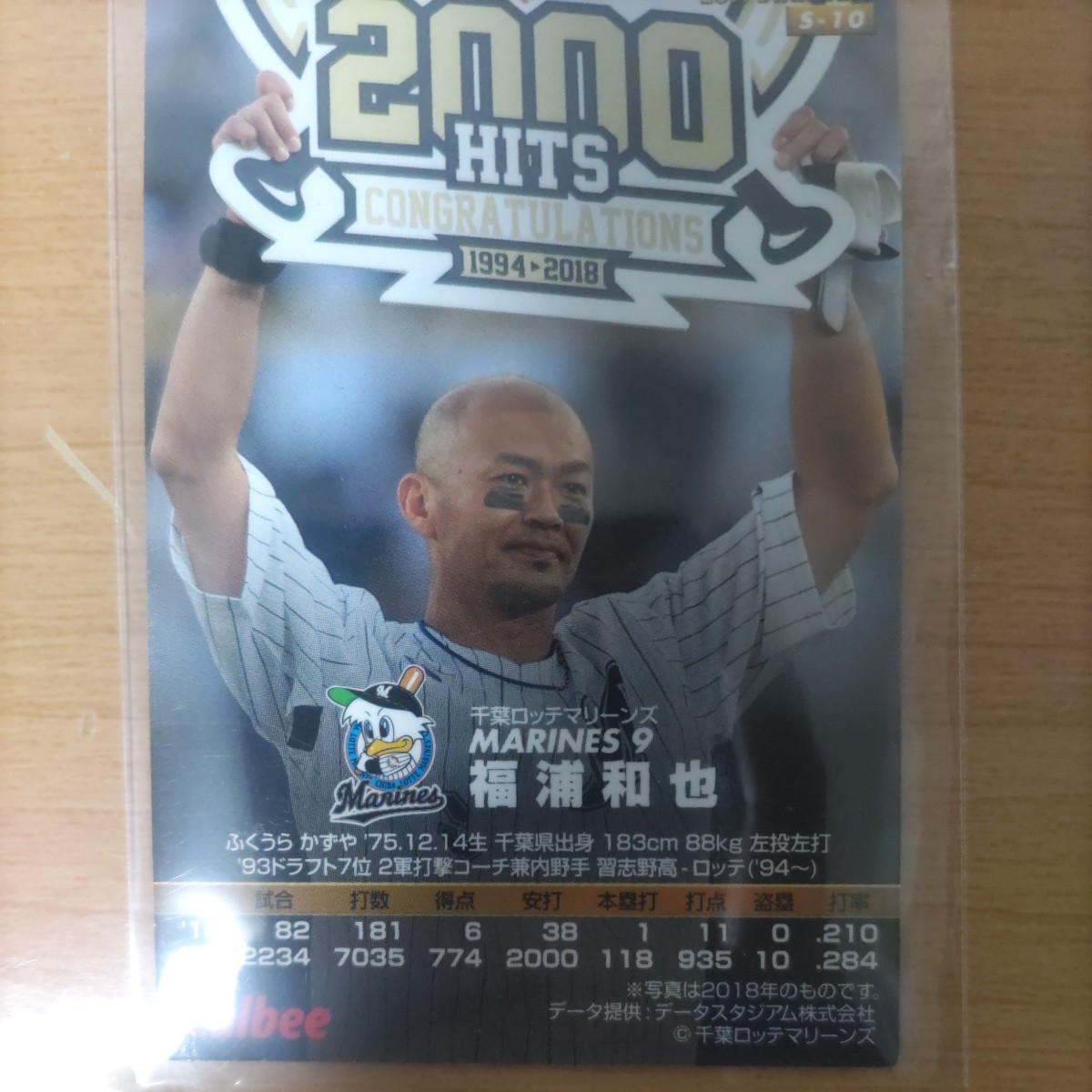 スターカード カルビー プロ野球チップ カードコレクション ロッテ レジェンド 福浦和也 2000本安打達成 キラキラカード