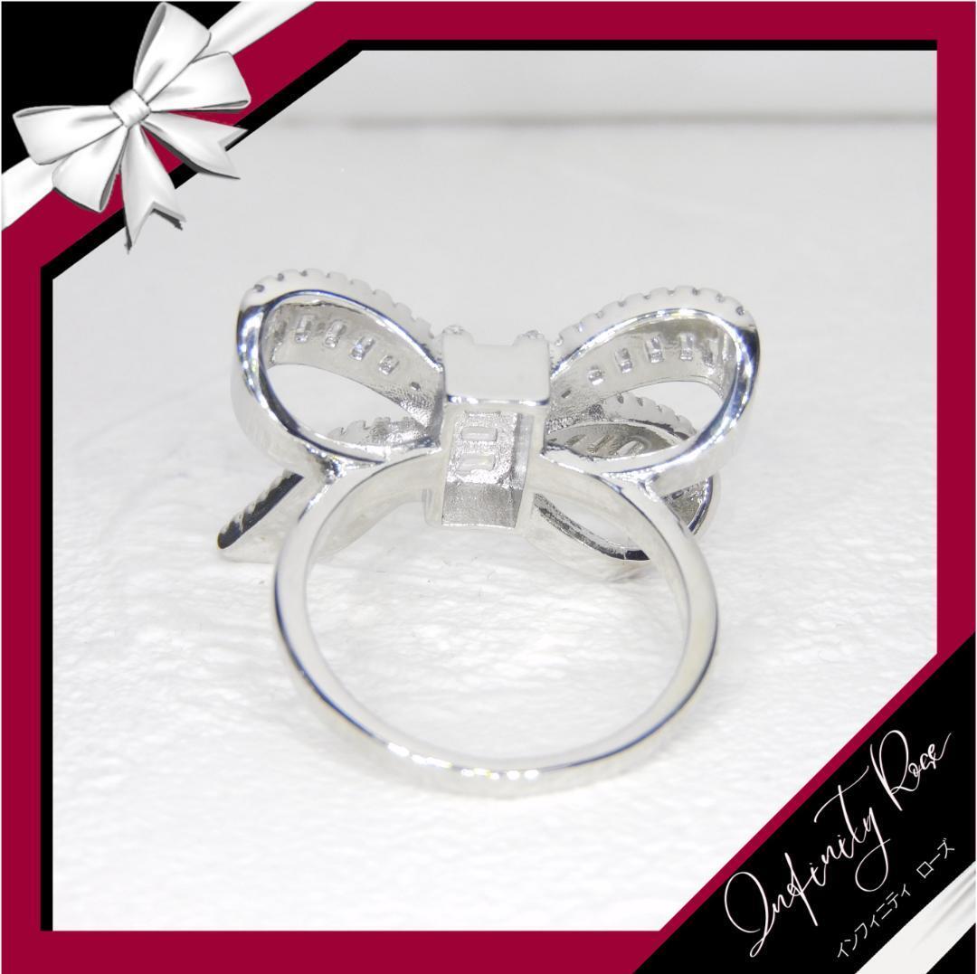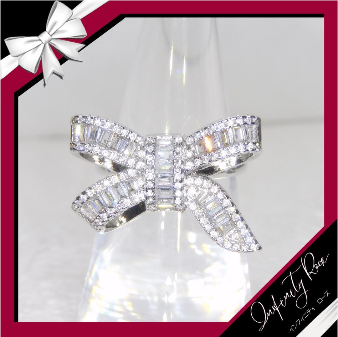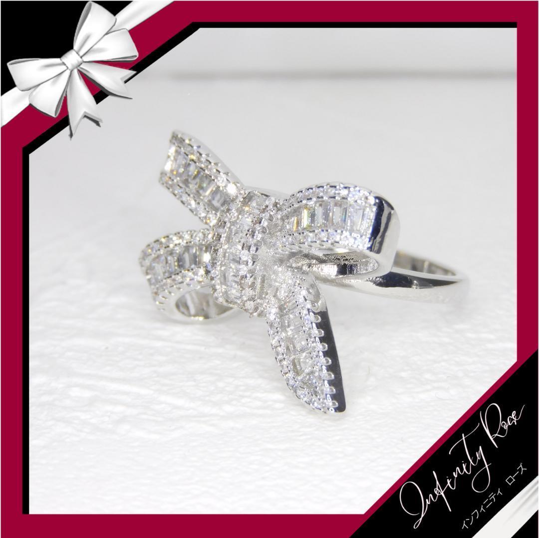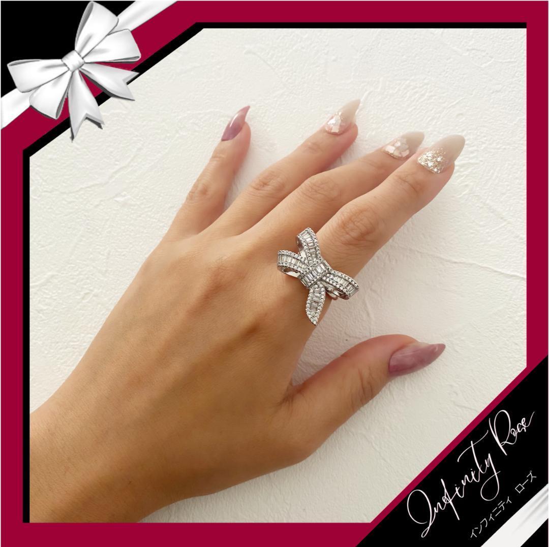 (R046S)12号 輝くクオリティ高い立体リボンリング 高価爪留仕様指輪