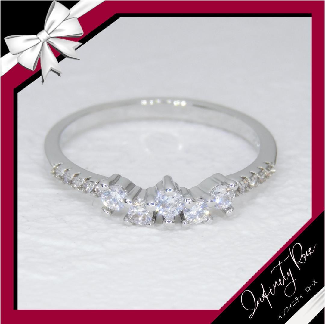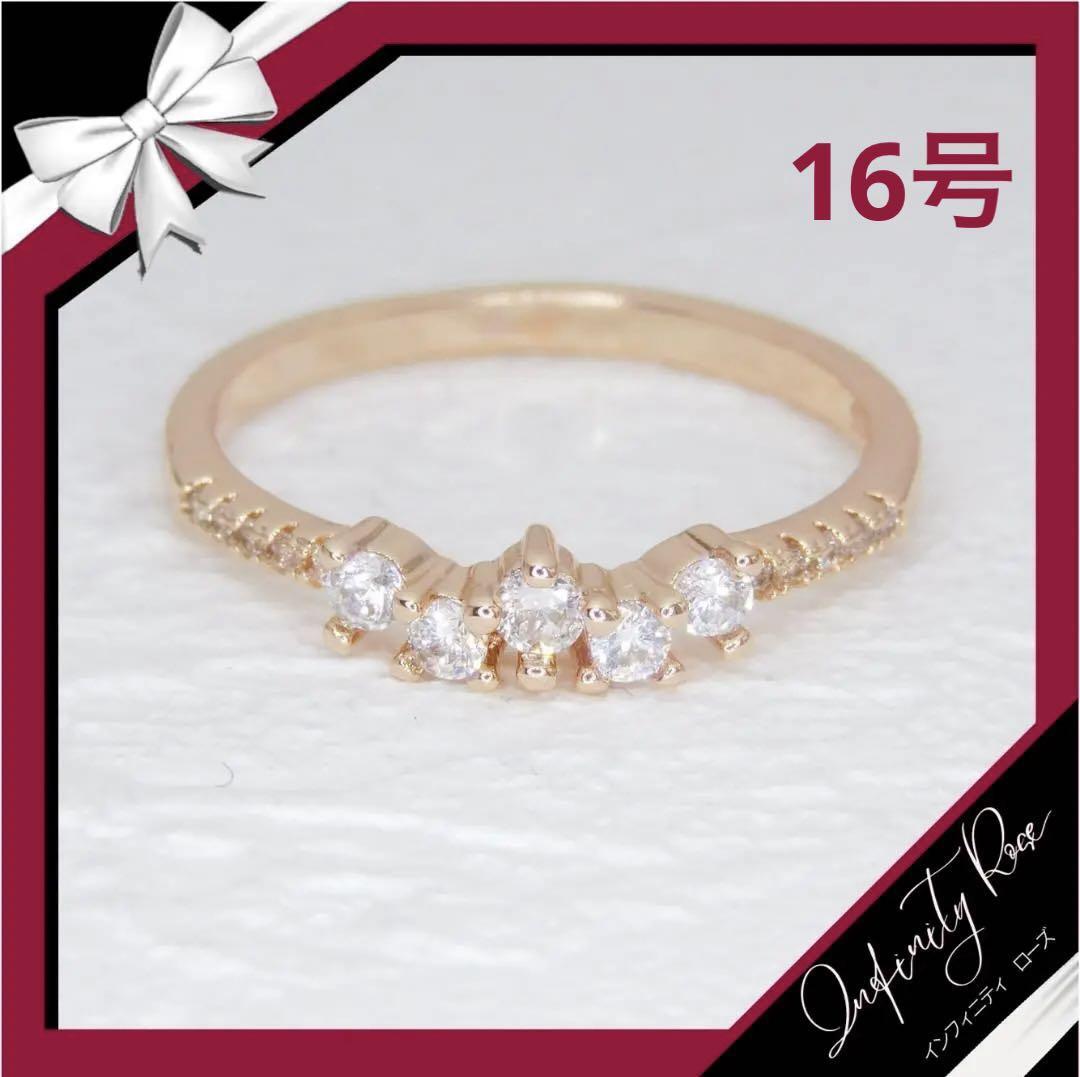 (R048P)16号 ピンクゴールドシャンデリア煌めく細リング 高価爪留指輪