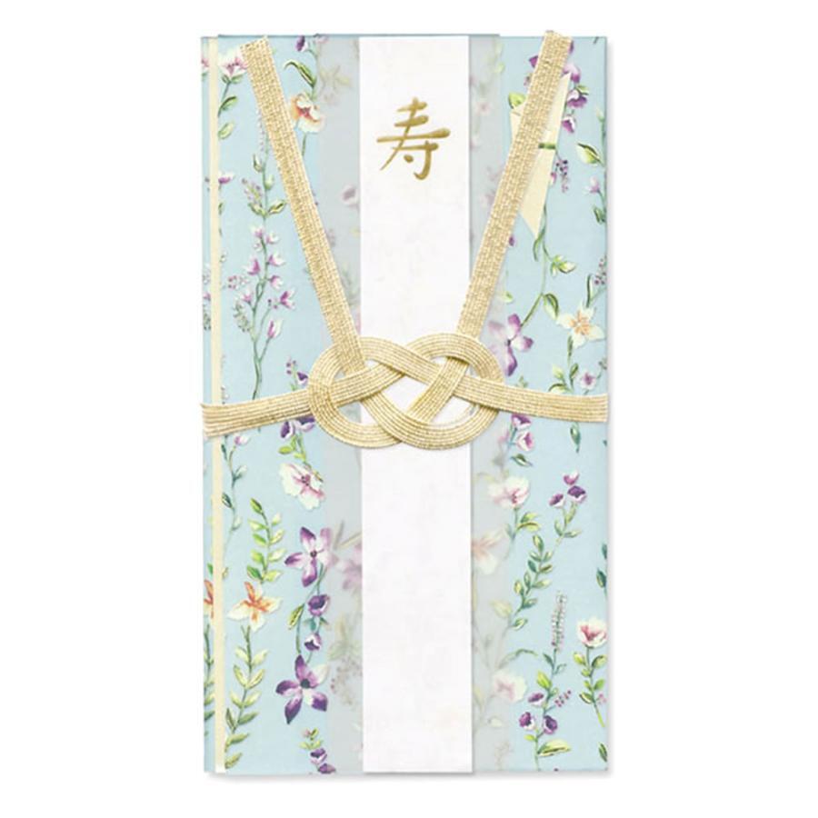 【即決】▽花づつみ 祝儀袋▽ のし袋 金封 ペールブルー 花 フラワー 短冊4枚 寿 HappyWedding 御祝 無地 水色 2~5万円 お祝い / HPB-16