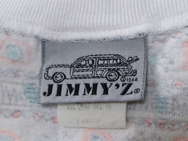 レア 80s USA製 JIMMY'Z 86年? ビンテージ モックネック ポップ アート ボーダー T L // BAD BOY CLUB LIFE'S A BEACH オールドスケート ☆