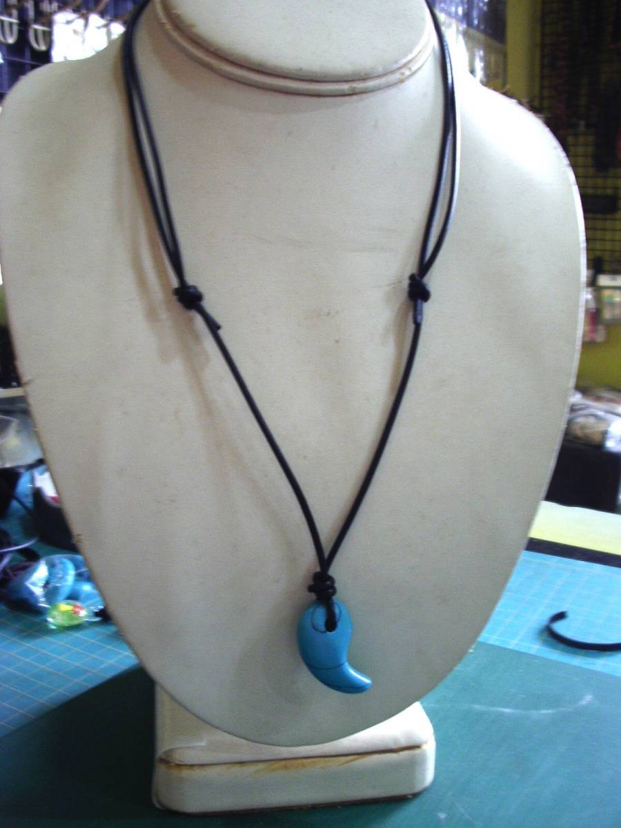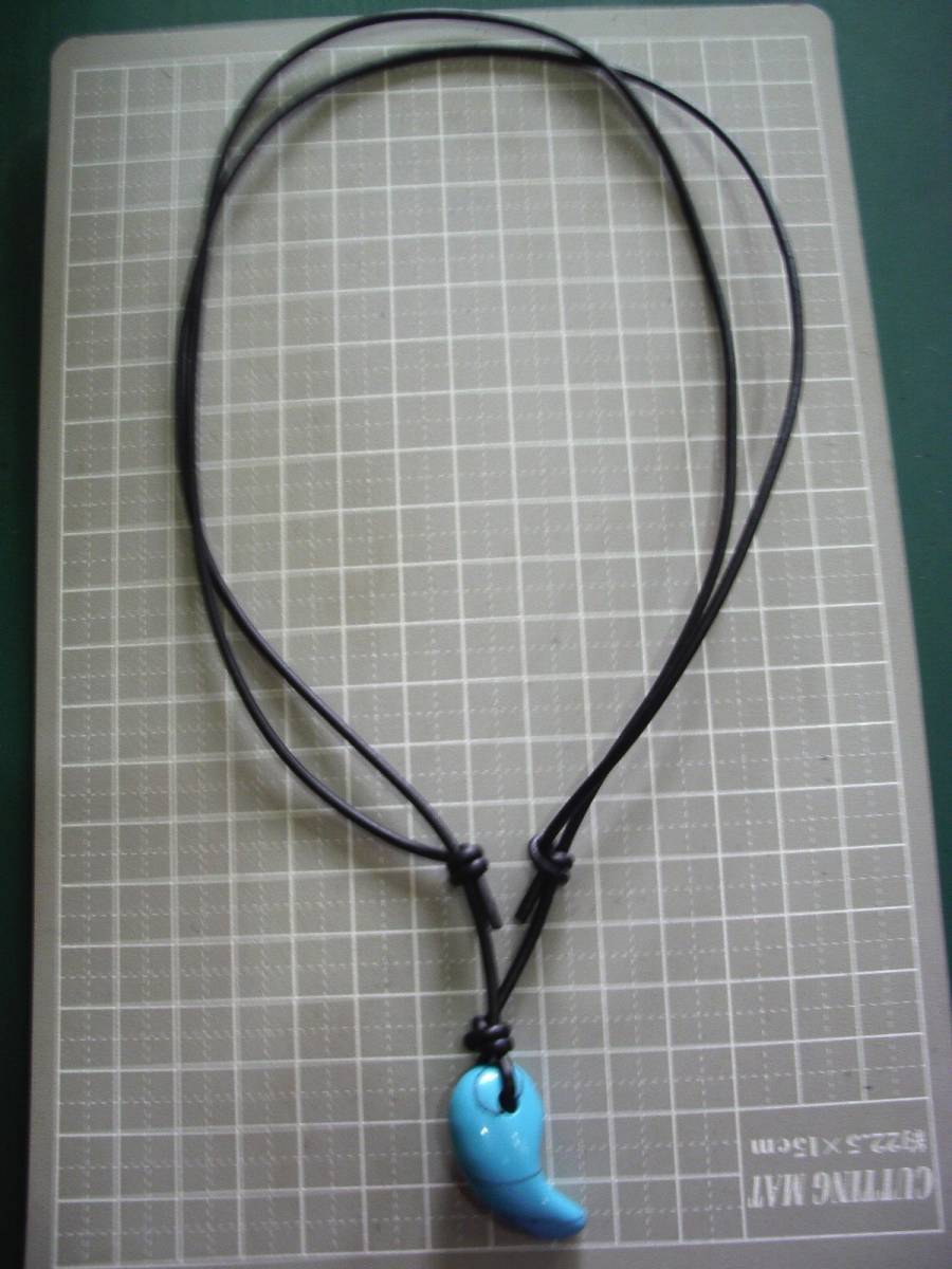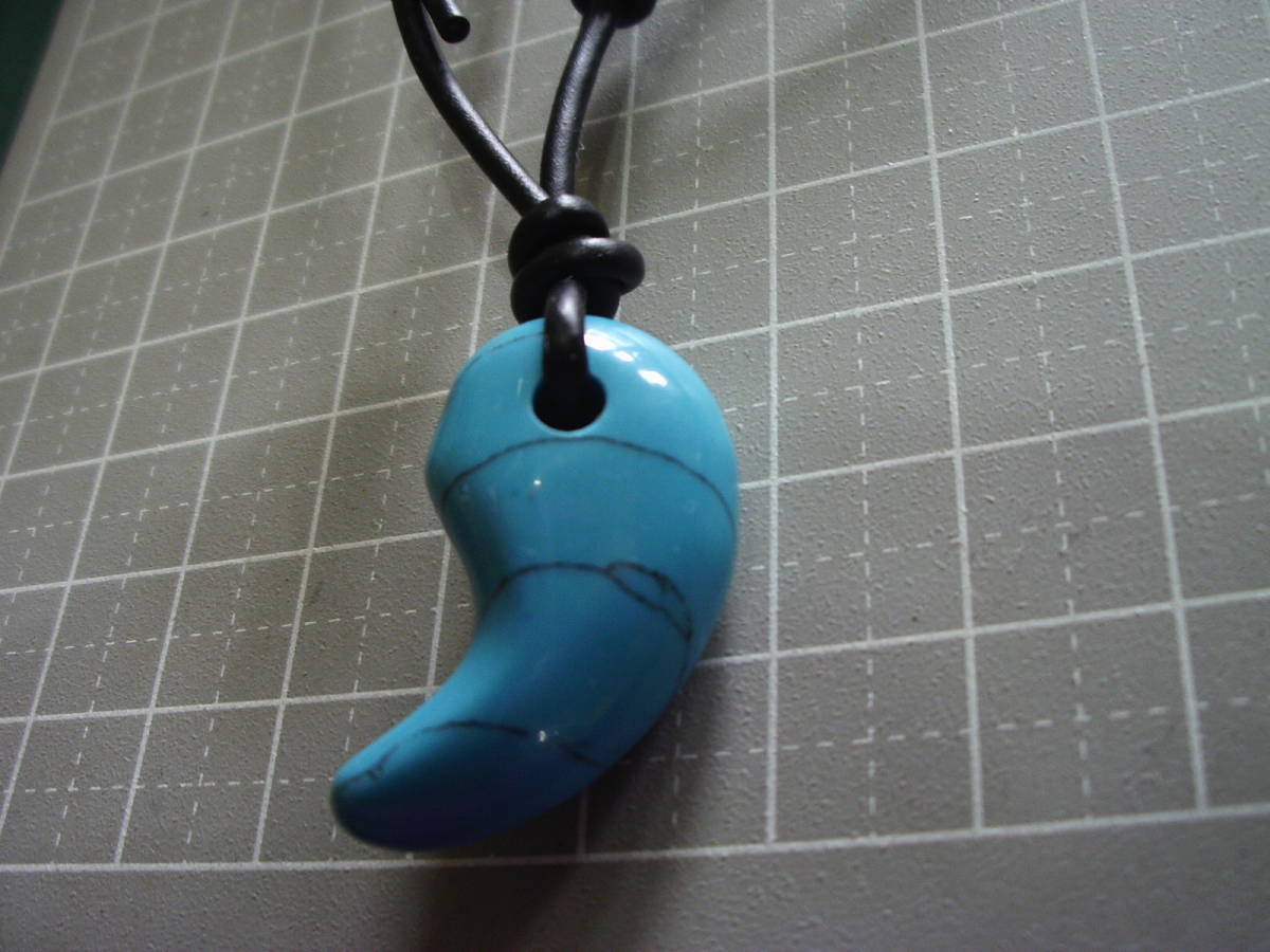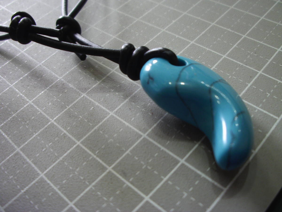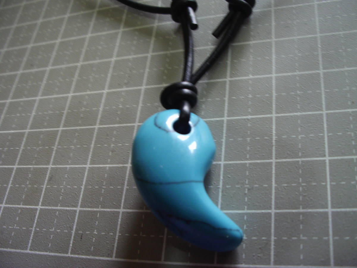 トルコ石(「練りトルコ石」)の勾玉ネックレスです。