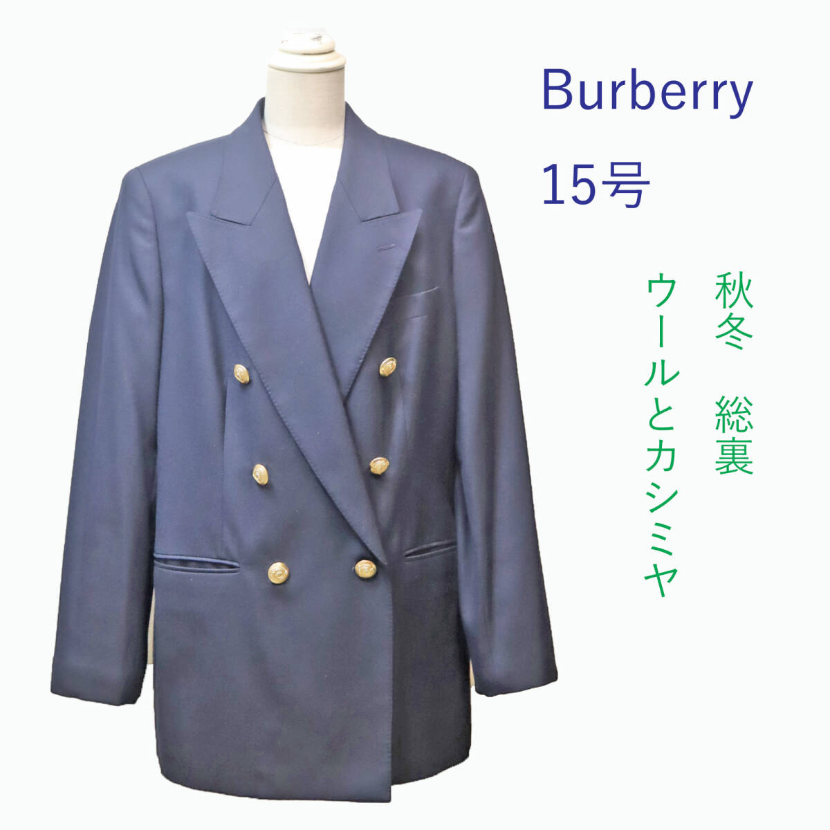 jk39 バーバリー Bueberry ジャケット ダブル ネイビー 15号 秋冬 15号 ウール&カシミヤ 未使用 在庫処分 未使用