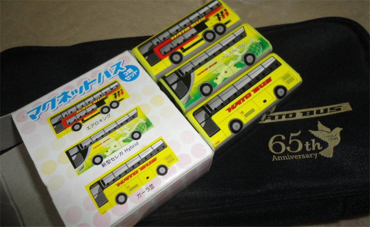 ▼はとバス ミニポーチ 65th Anniversary 記念品 エアロギング 新型セレガ Hybrid ガーラⅢ オマケ → マグネットバス