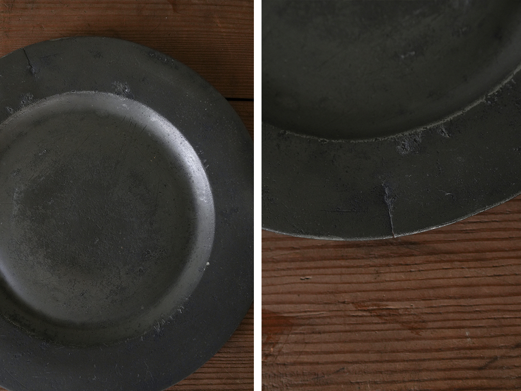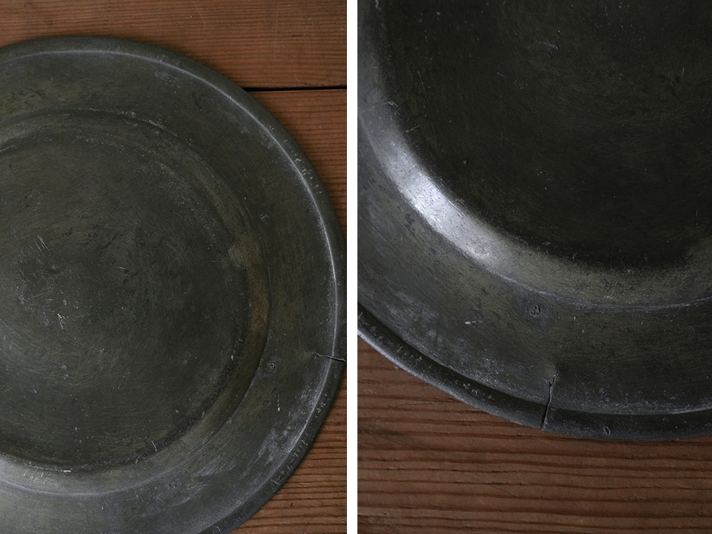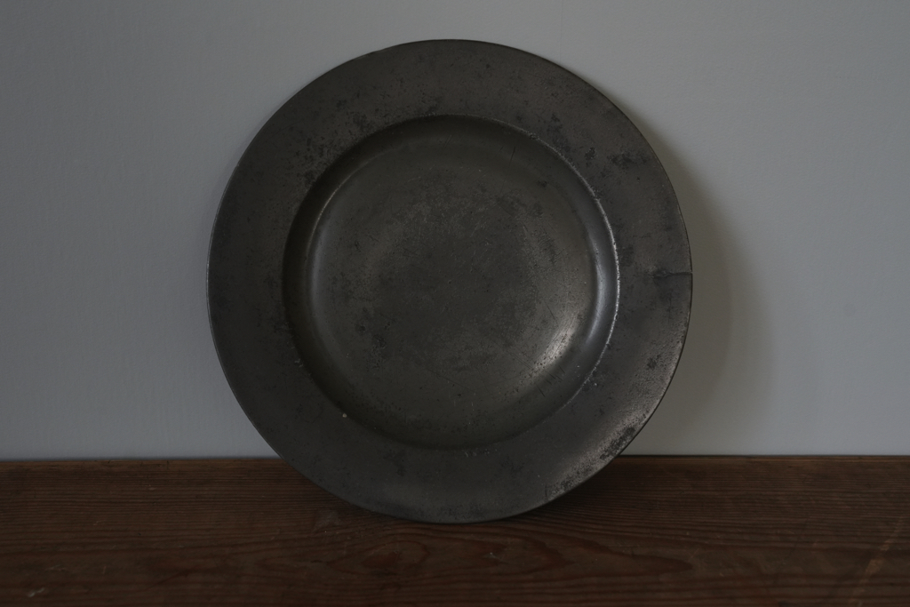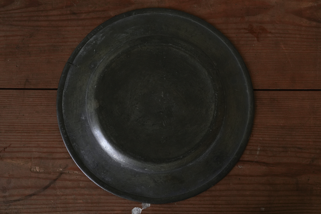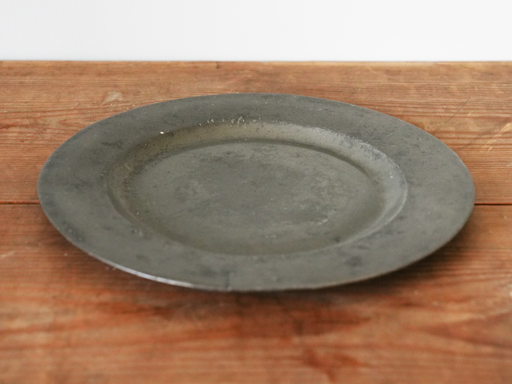 フランスの田舎で見つけた古いピューター製のプレート(中皿)です。