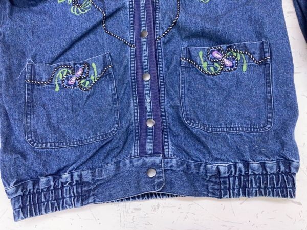 オールド レトロ モード 古着 豪華 刺繍 デニム カーディガン ジャケット レディース ビッグシルエット M 紺 です。