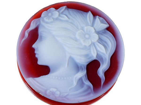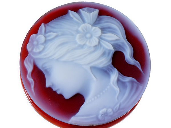 華やかな女性の横顔を彫刻した、希少な高級レッドストーンカメオルースを特別大放出致します!