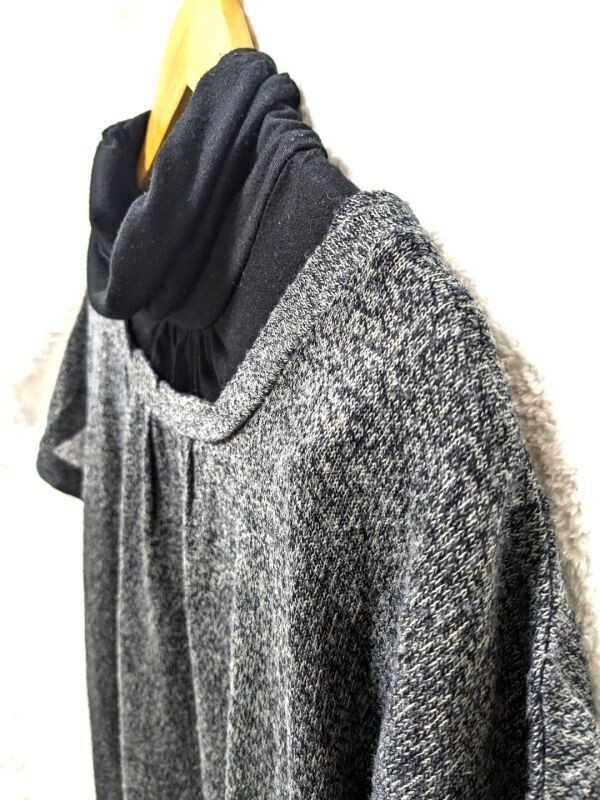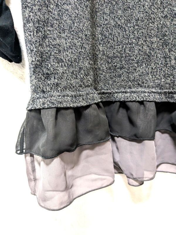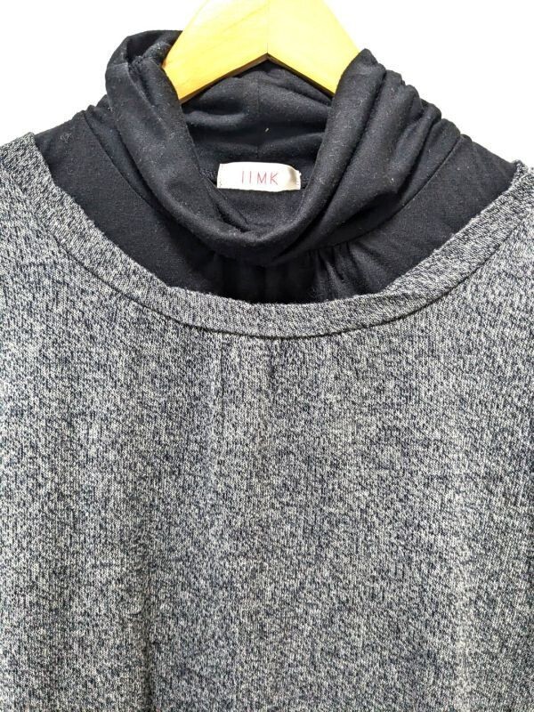★美品 iiMK アイアイエムケー トップス レディース アンサンブル ワンピース ニット半袖セーター 長袖インナー(袖ギャザー) 裾はティアードシフォン タートルネック 黒&グレー  M /  nr2-019