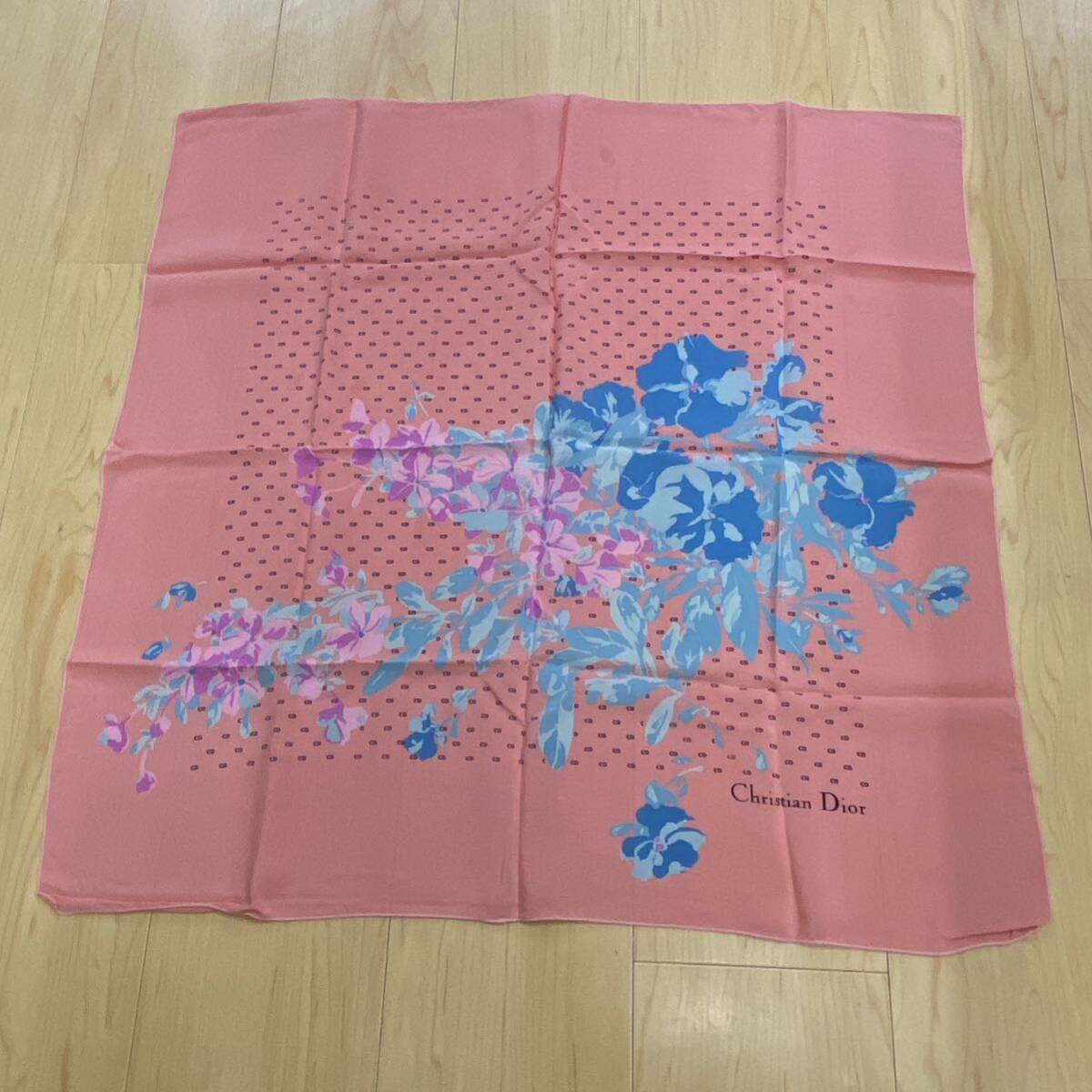 Christian Dior クリスチャンディオール スカーフ ピンク 花柄 ロゴマーク no.25