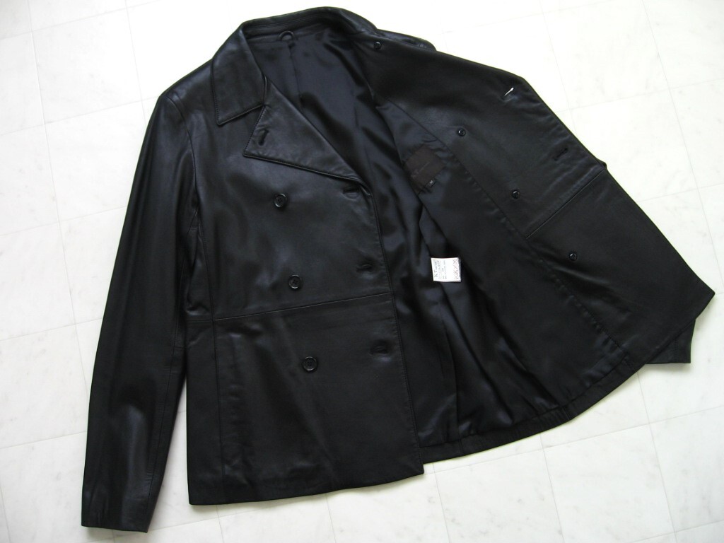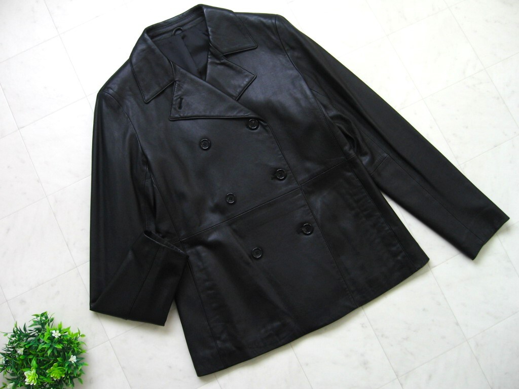 羊革レザー♪ K. T キヨコタカセ ★ 大人のラムレザージャケット ピーコート M 黒ブラック