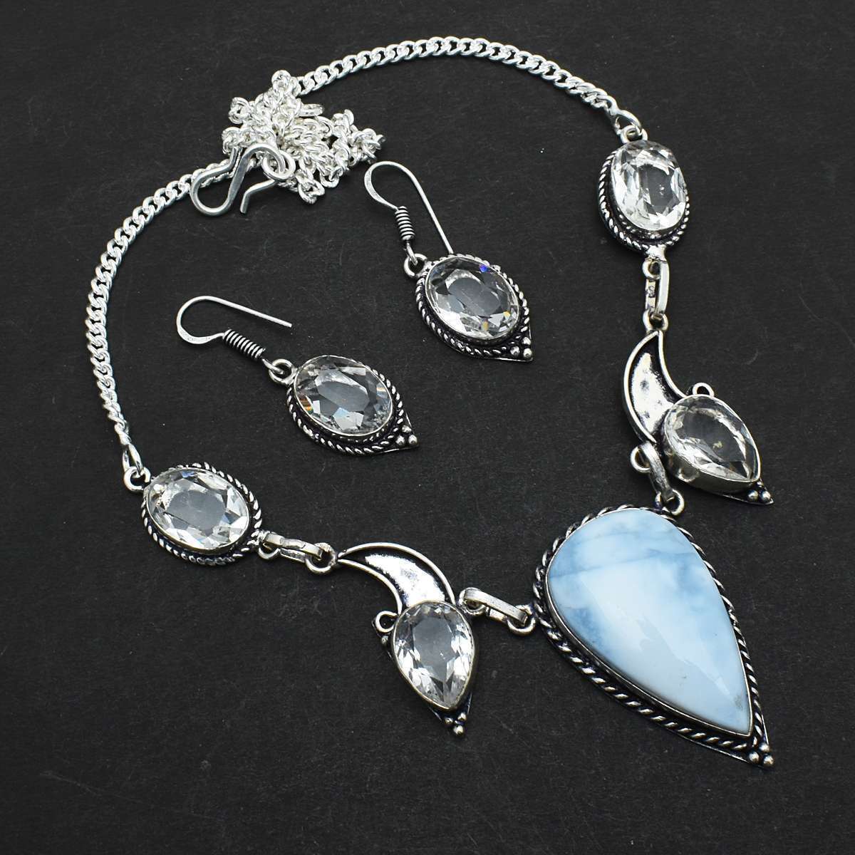オパール ネックレス 首飾り ピアスとセット すぐにお届けできます。Owyheeオパール ホワイト トパーズ 天然の宝石 31 Gms AN-2616