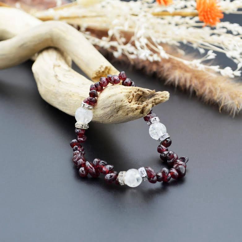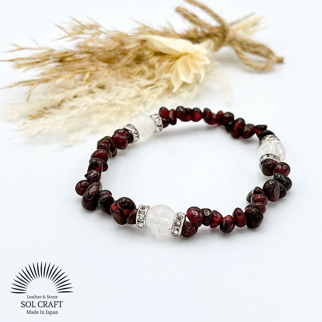 ガーネット さざれ石 クラック水晶 3つ 天然石 ブレスレット パワーストーン レディース メンズ ユニセックス 新品 未使用 送料無料