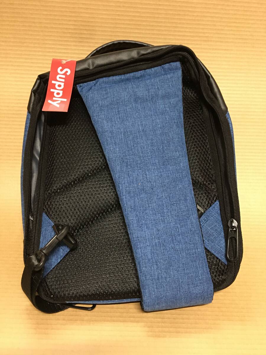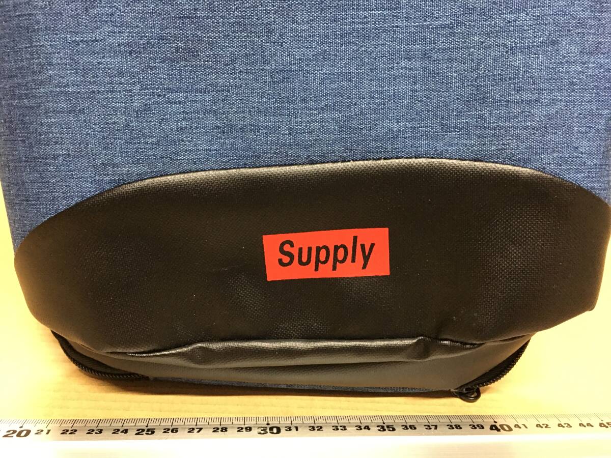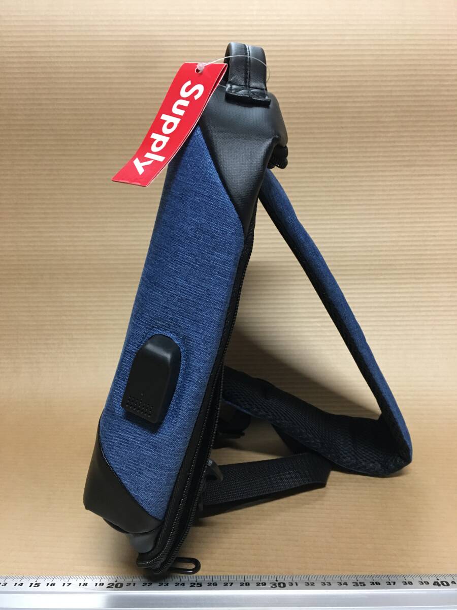新品 Supply ボディバッグ メンズ鞄 斜め掛け ショルダーバック 裏側 メッシュ地 黒と青系 色 ジーンズ色 USBホルダー付き チープ スプライ