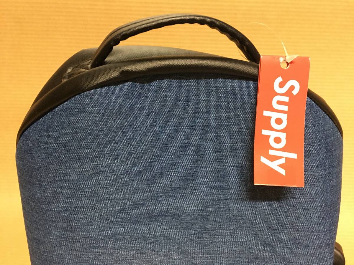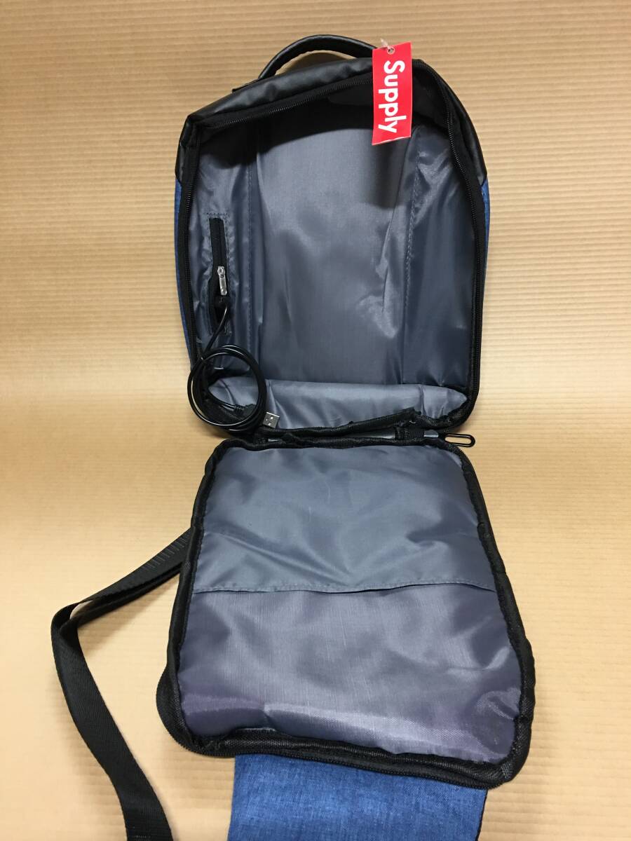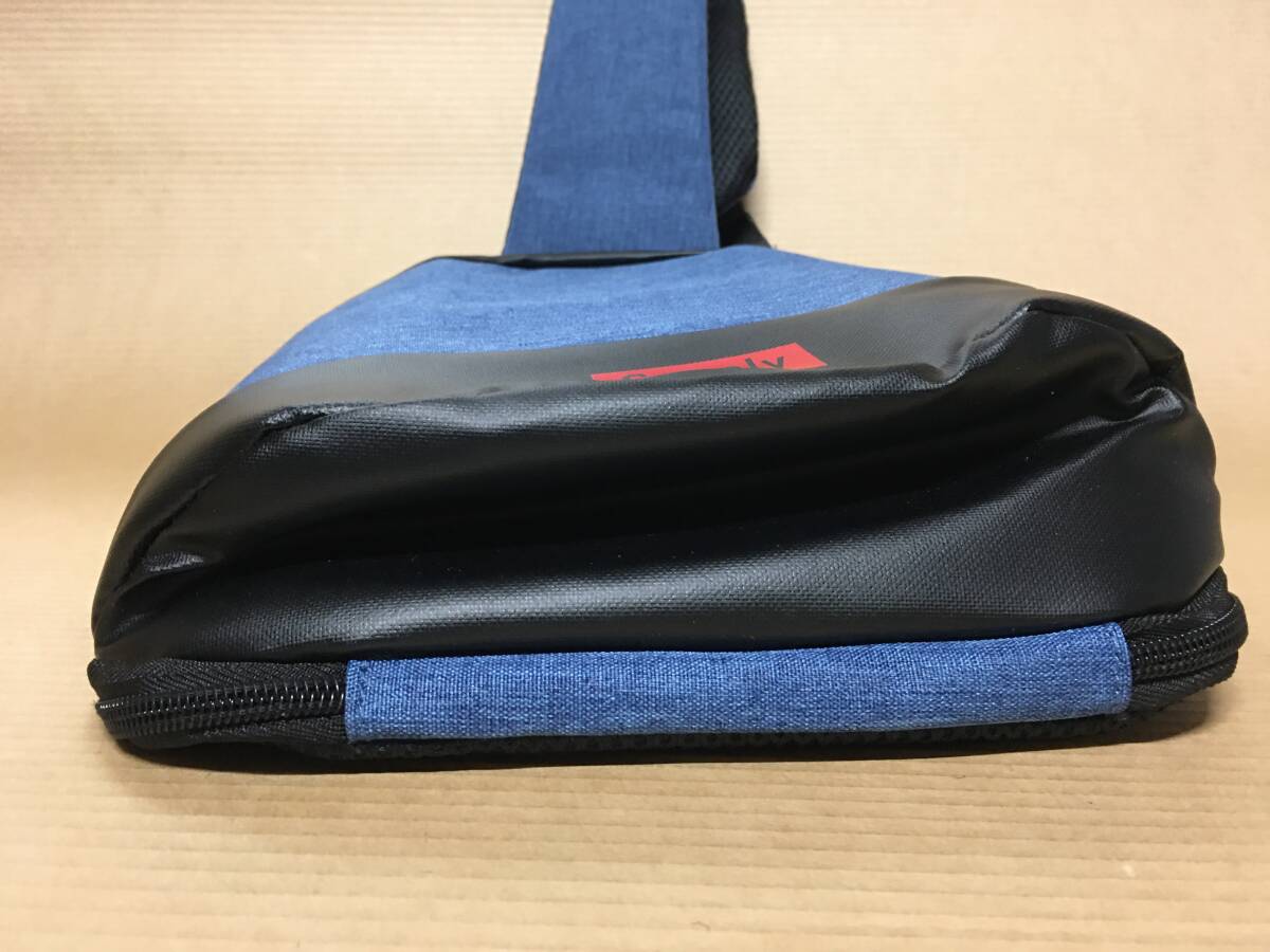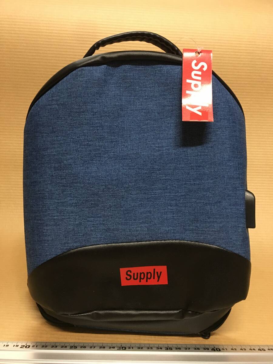 新品 Supply ボディバッグ メンズ鞄 斜め掛け ショルダーバック 裏側 メッシュ地 黒と青系 色 ジーンズ色 USBホルダー付き チープ スプライ