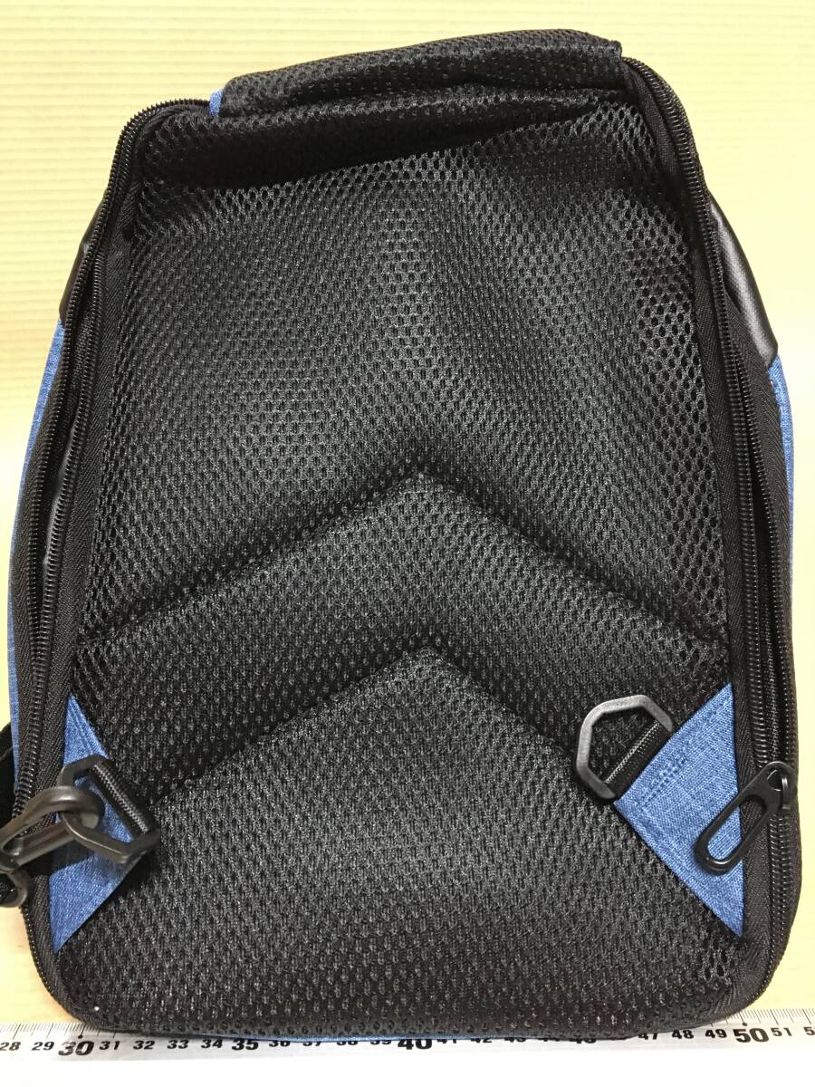 裏側がメッシュ地 黒と青系 色 ジーンズ色  USBホルダー付き。