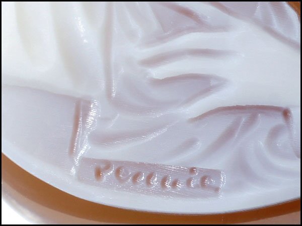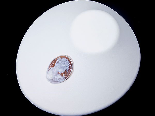 儚げな表情を浮かべる女性像は、柔らかい髪の曲線や、艶やかな肌の質感など、精緻を極めた繊細な彫刻で演出された魅力的なシェルカメオルース作品です!