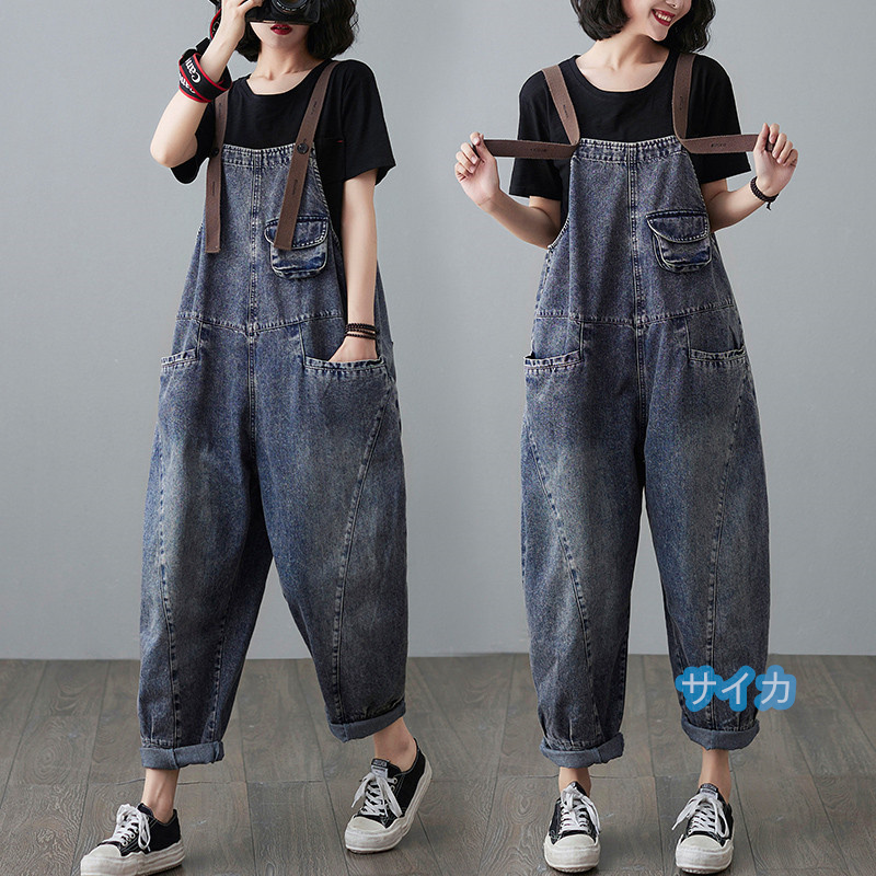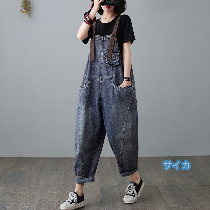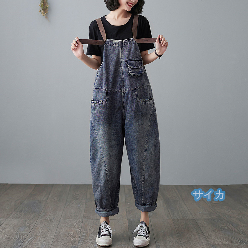 サロペット レディース つなぎ オールインワン デニムサロペット ジーンズ ワイドパンツ きれいめ ゆったり 春 夏 M~2XL/22WD8