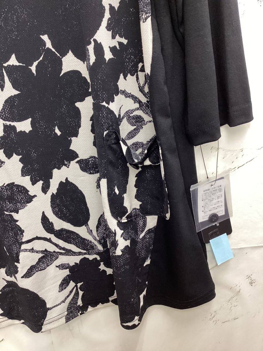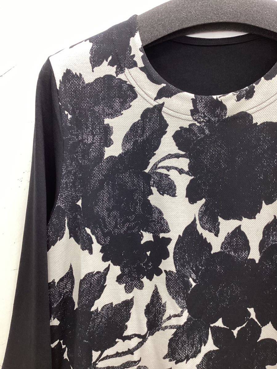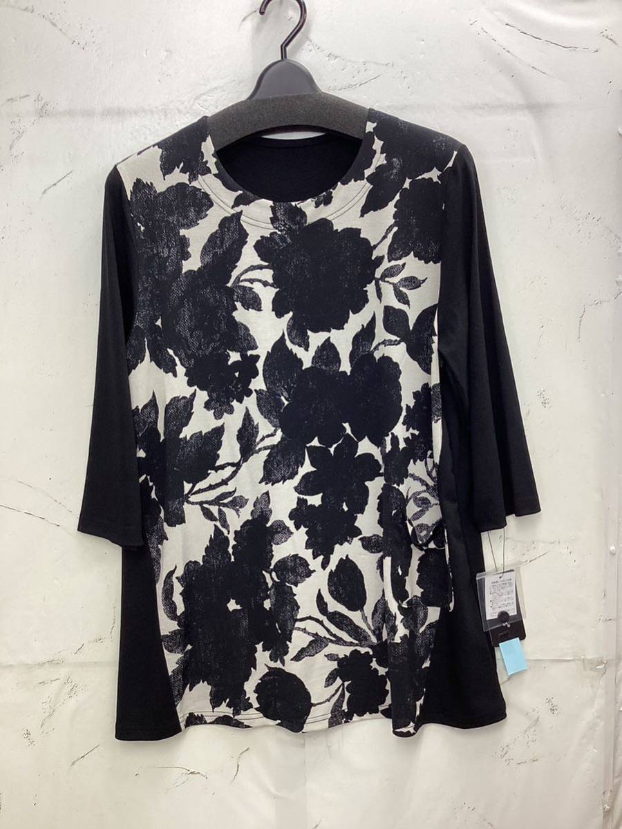 ☆7分袖☆Aラインシルエット☆前身頃に切り替え花模様