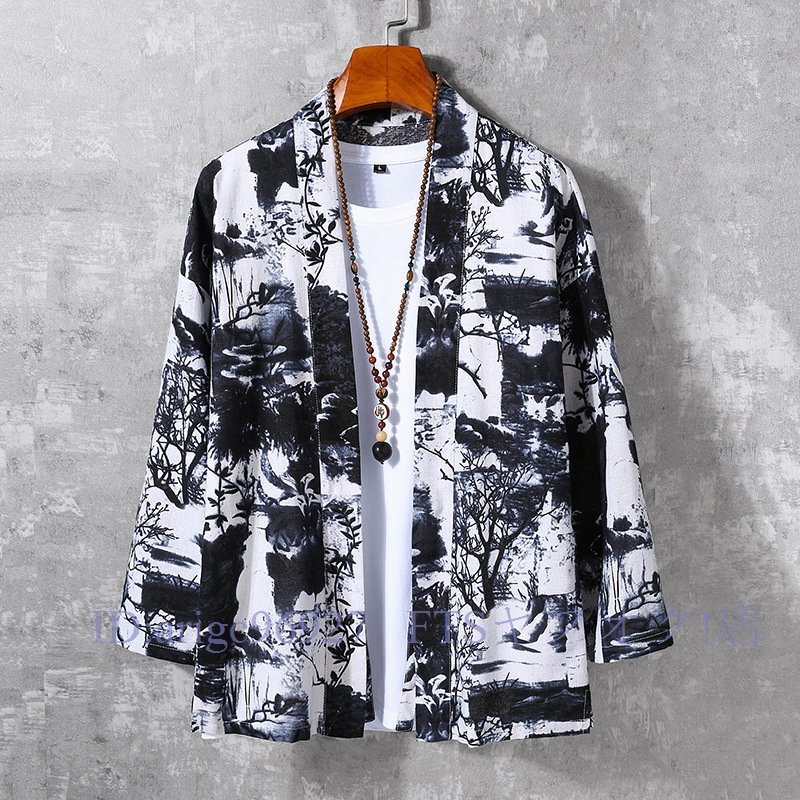 A6780★ シャツ カーディガン カジュアルシャツ 甚平 羽織 7分袖 浴衣 部屋着 花火大会 夏祭り ゆったり 大きいサイズ M~5XL