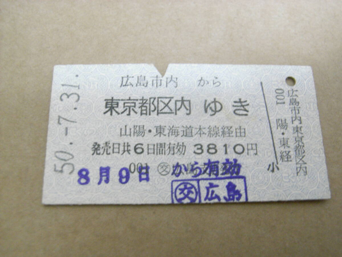 山陽本線 広島市内から東京都区内ゆき 山陽・東海道本線経由 昭和50年7月31日 交 広島支発行 国鉄