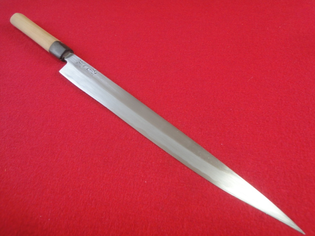 【有次】フグ引き包丁 ※刺身包丁 刃渡30.9㎝ 全長47㎝ 峰厚3.6mm ※片刃 中古品 全国一律送料1100円