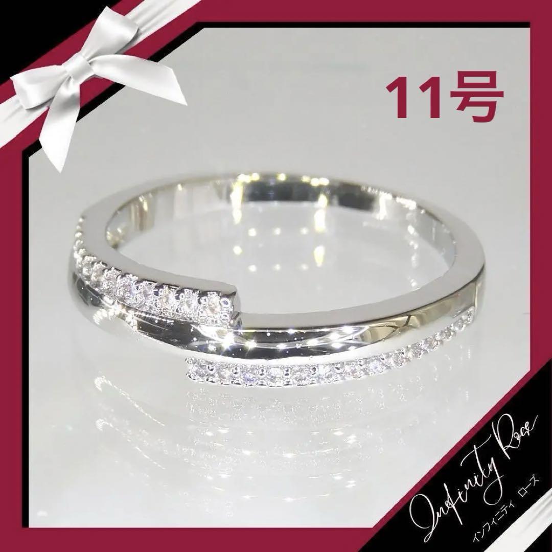 (R011S)11号 重なり合い輝く指輪のトリプルジルコニアリング 大人の色気