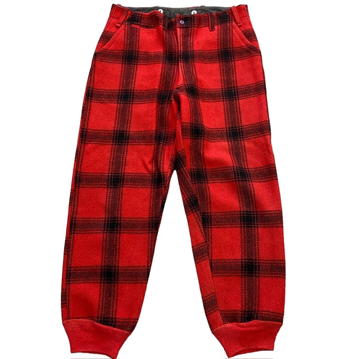50s ヴィンテージ チェック柄 ウールパンツ サスペンダーボタン ハンティングパンツ TALONジッパー 黒赤