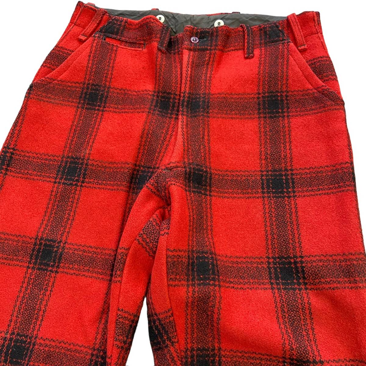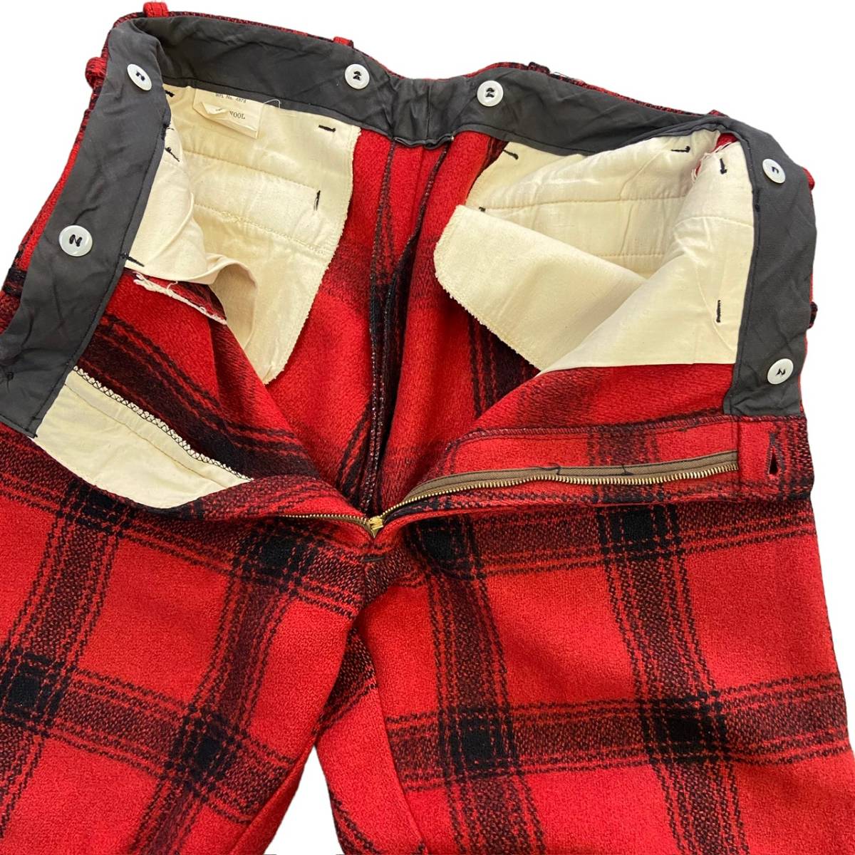 50s ヴィンテージ チェック柄 ウールパンツ サスペンダーボタン ハンティングパンツ TALONジッパー 黒赤 USA 60s 70s ウール パンツ