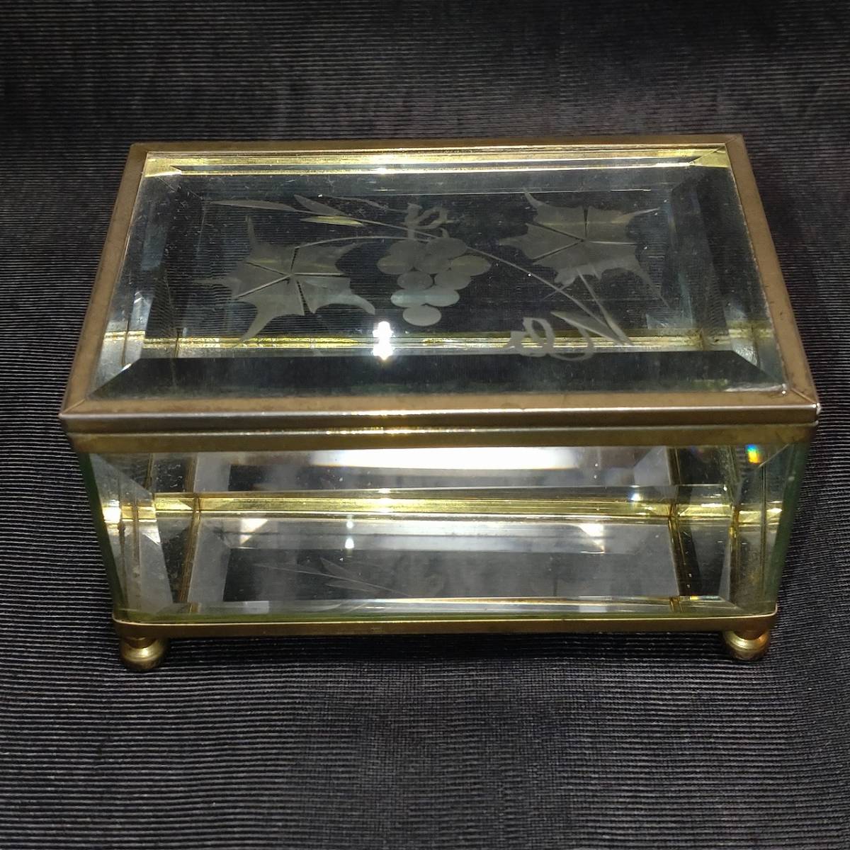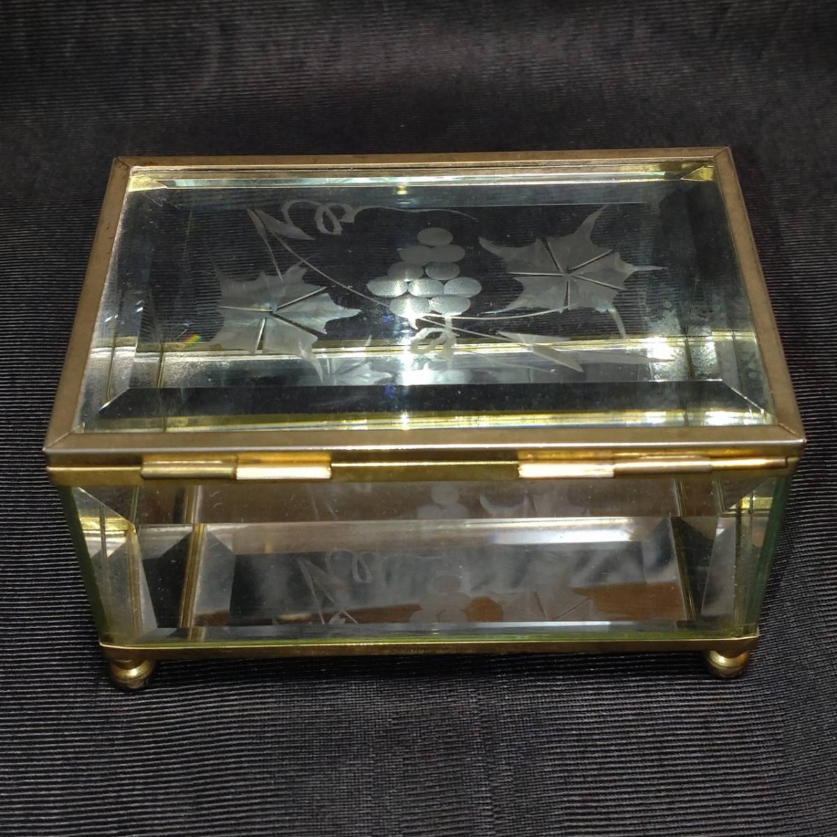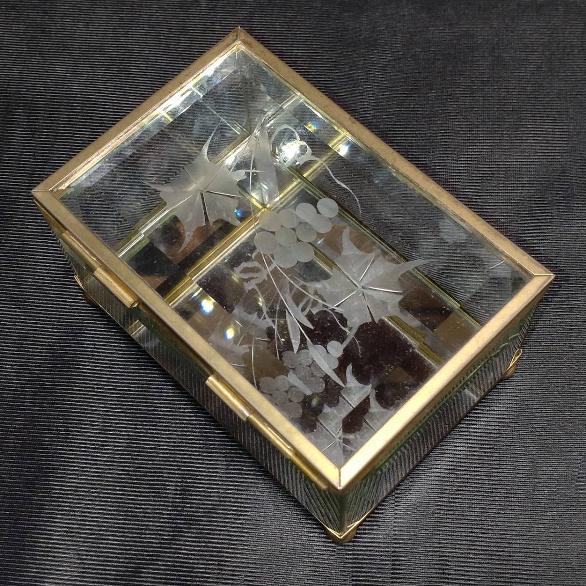 アクセサリーケース 硝子製 小物入れ 宝石箱 ガラス製 幅約12cm 奥行約8cm 高さ約6.5cm 【4140】
