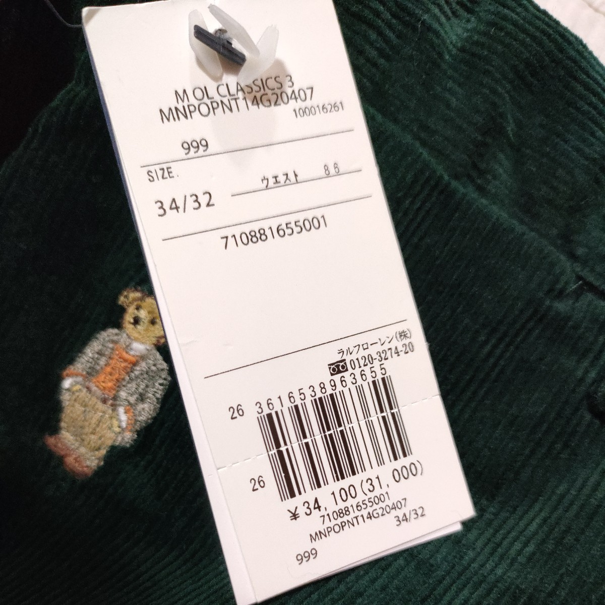 新品未使用 ポロラルフローレンのコーデュロイパンツです。