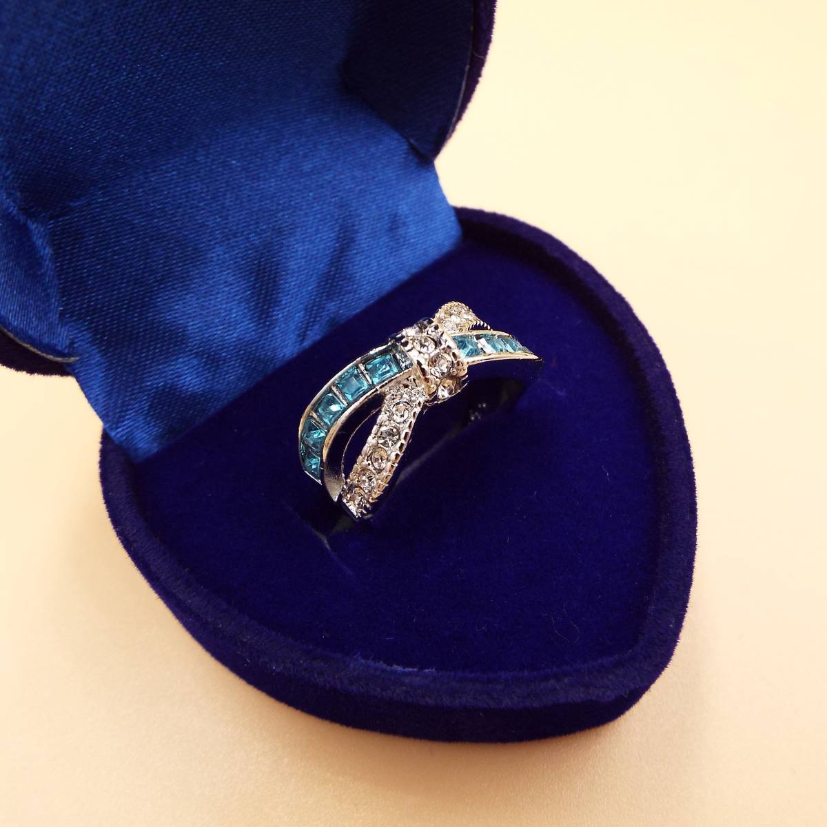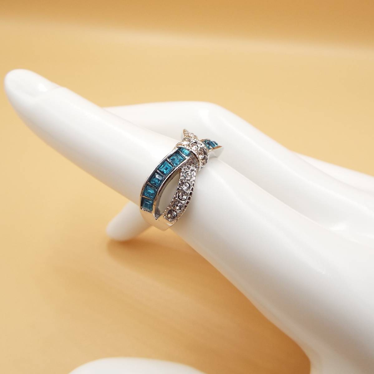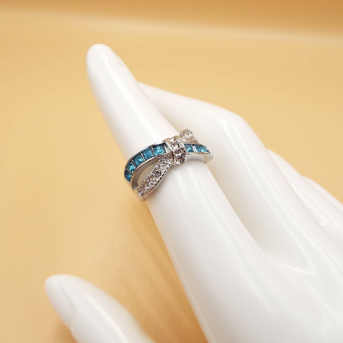 S925 クロスリボン クリスタル リング ブルー レディース 指輪
