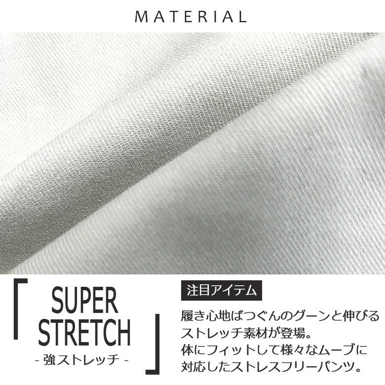 伸縮性があり動きやすくスーパーストレッチツイル生地を採用することでシワやよれに強いパンツに仕上がっています!