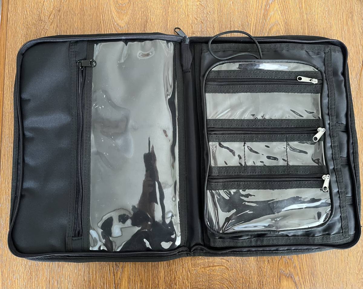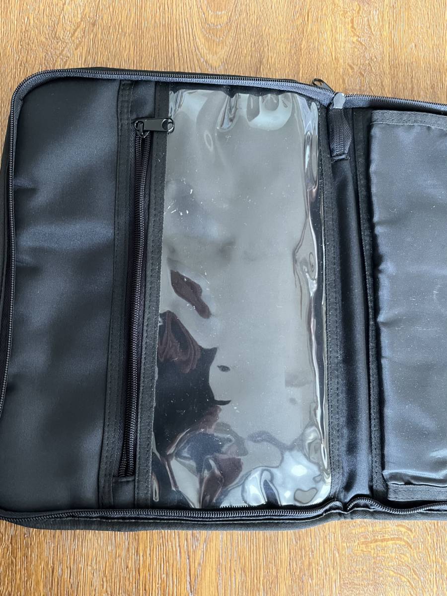 【商品内容】 モバイルPC、iPadケース トラベル用です。保護パッドで衝撃を和らげるようになっており、本体にも別ケースにもミニケースがたくさん付いています。当オークションで落札しましたが使用せず自宅保管しておりました。 【サイズ】マチ 約2.5cm 横 約30.5cm タテ 約23cm This is a travel case for mobile PCs and iPads. It comes with protective pads to cushion the impact, and many mini cases are included with both the main case and the separate case. ※詳細は写真をご覧いただき宜しくお願い致します。 ※送料は定形外郵便またはゆうパック(60サイズ)で、出来るだけ安価となるよう梱包しお知らせいたします。