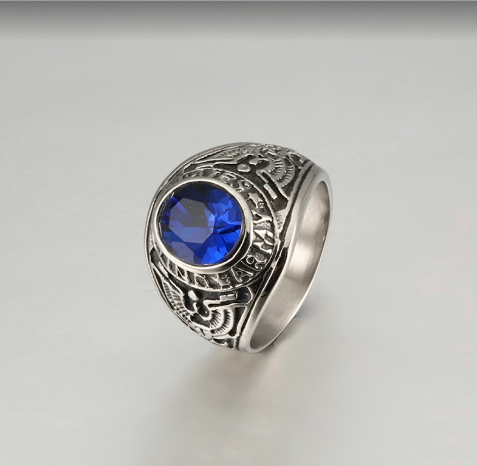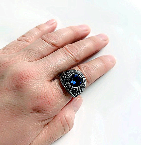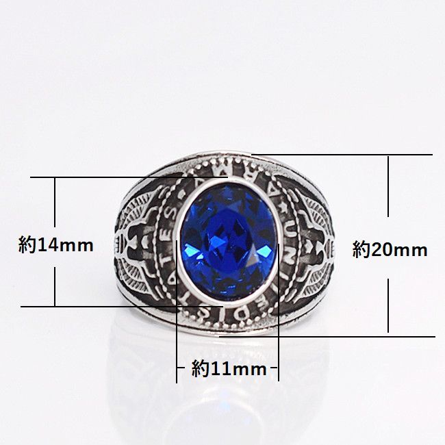 ●金属素材:ステンレス。●カラー :シルバー、一部塗装仕上げ 。●ブルーストーン:キュービックジルコニア 。●サイズ:14号(直径約17.4mm)。●重さ:約19g。