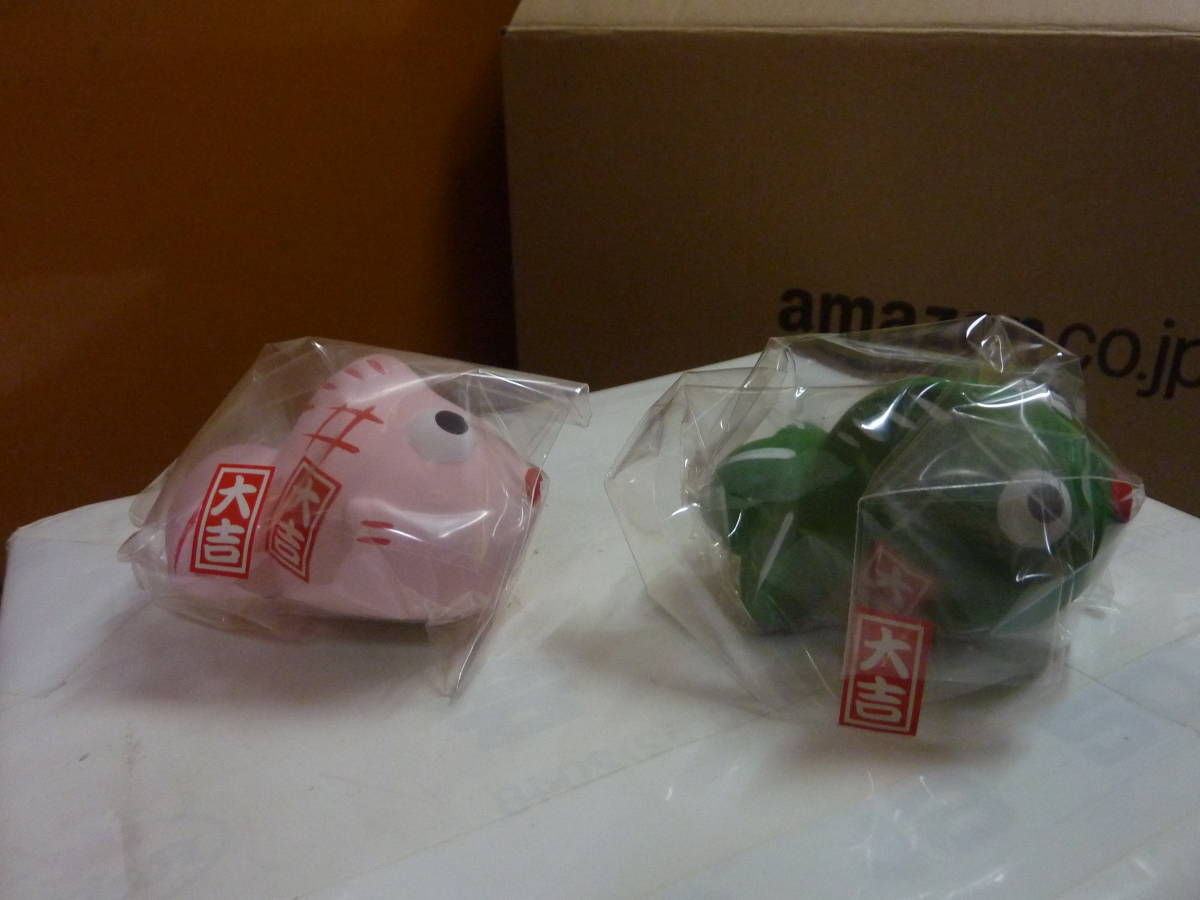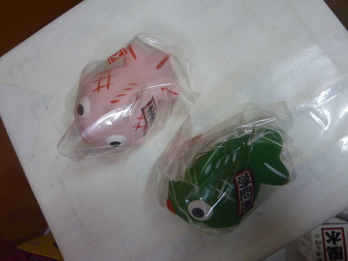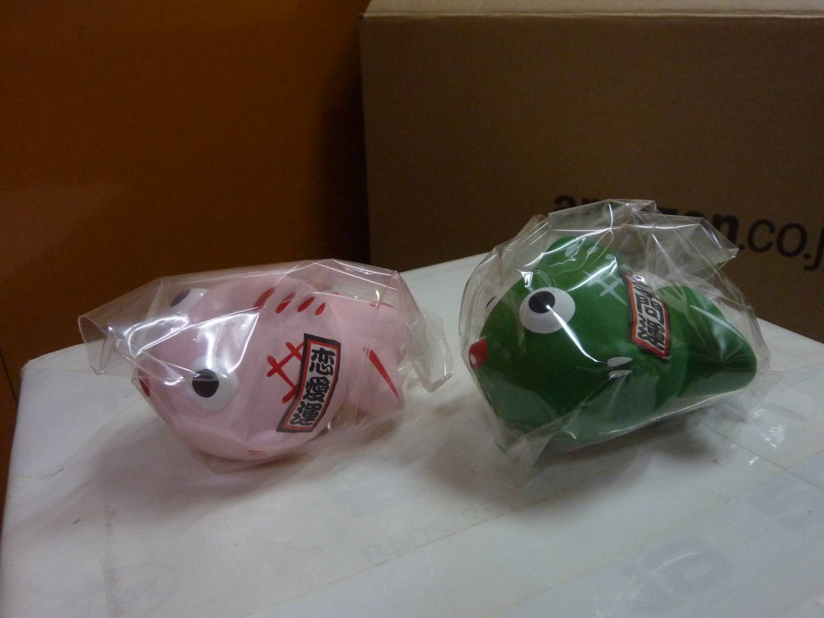 未使用[ 幸運を呼ぶ 風水 金魚 ]かわいい陶器置物 2個セット ピンク (恋愛運) みどり (学問運) 大吉 本体約7㎝ 送料無料 2