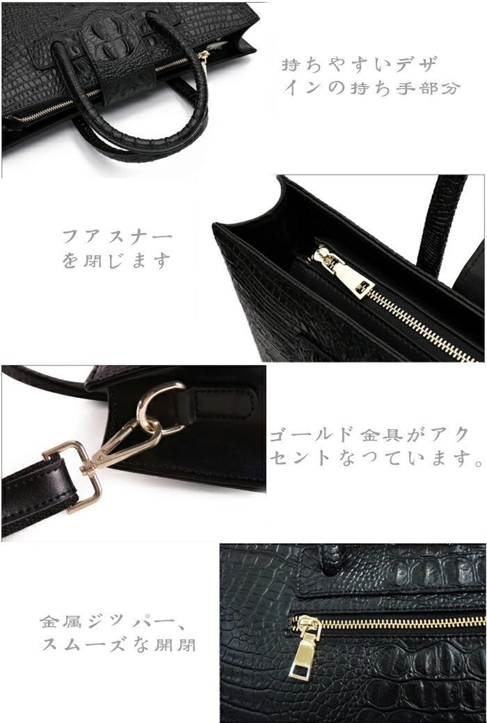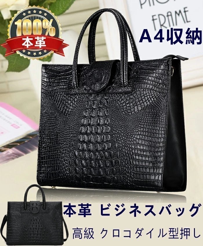 高級 クロコダイル型押し 本革 ビジネスバッグ