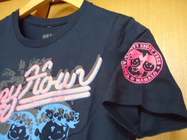 ハワイにて、古着として、購入しました。88ティーズ社製。コットン100%素材ですが、少々伸縮性あります。前・左袖プリントのみです。カラーは、黒色です。クリーニング済み。サイズ表示は、レディースのMですが、平置き実寸を重視して下さい。なお、多少の誤差は、ご了承下さい。サイズ表示は、USAサイズです。肩幅約35センチ・身幅(脇の下)約40センチ・丈約64センチです。目立ったダメージありませんが、USED物なので、古着に、ご理解のある方・24時間以内に、お手続き入力後、期限内に、かんたん決済、出来る方のみ、ご入札をお願い致します。この商品は、1点物です。 ※※発送方法・送料は、レターパックライト郵便(追跡可能・補償無し)ですと、430円又は、レターパックプラス郵便(追跡可能・手渡し配達・補償無し)ですと、600円です。※※ ☆★★★★★☆送料は、変わりますが、何点でも、同梱包可能です。数点落札されましたら、まとめて取引を、選択お願いします。☆★★★★★☆