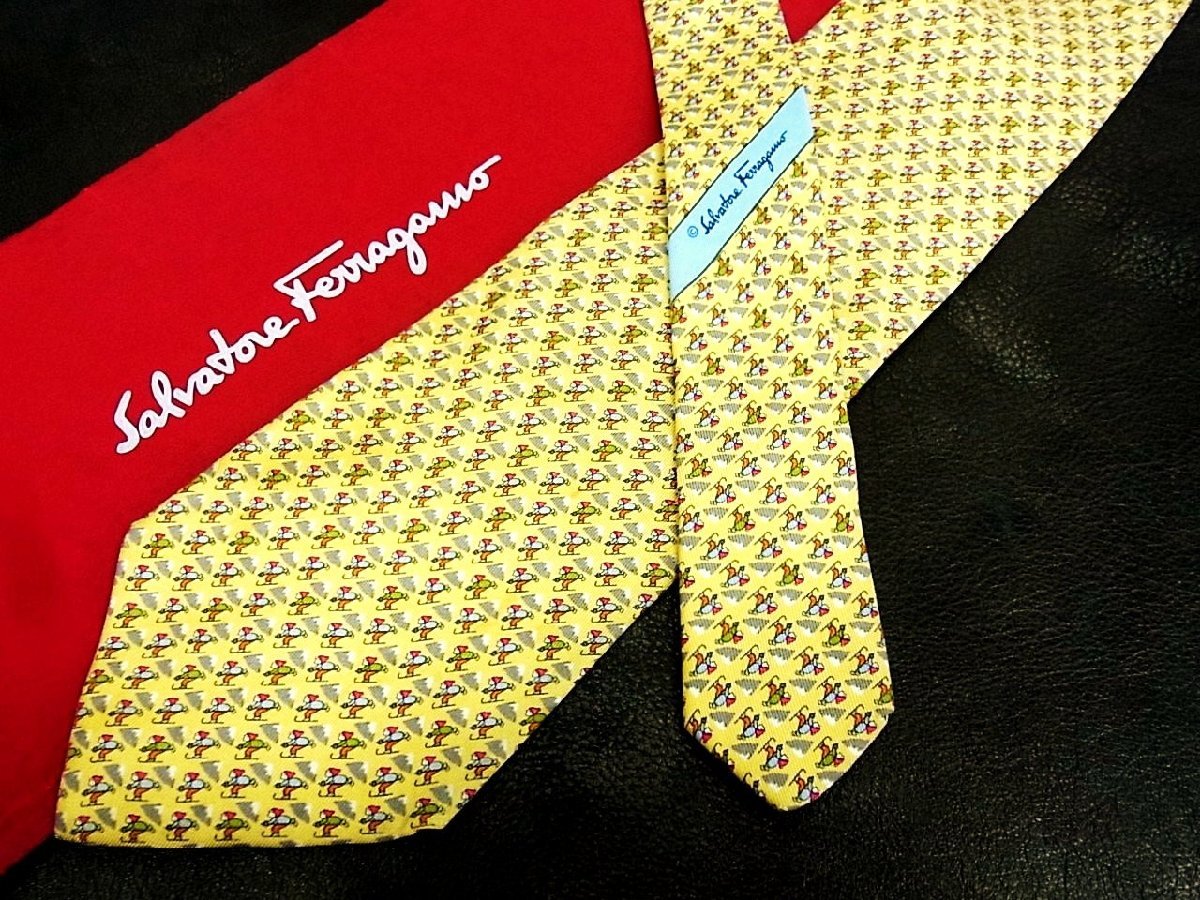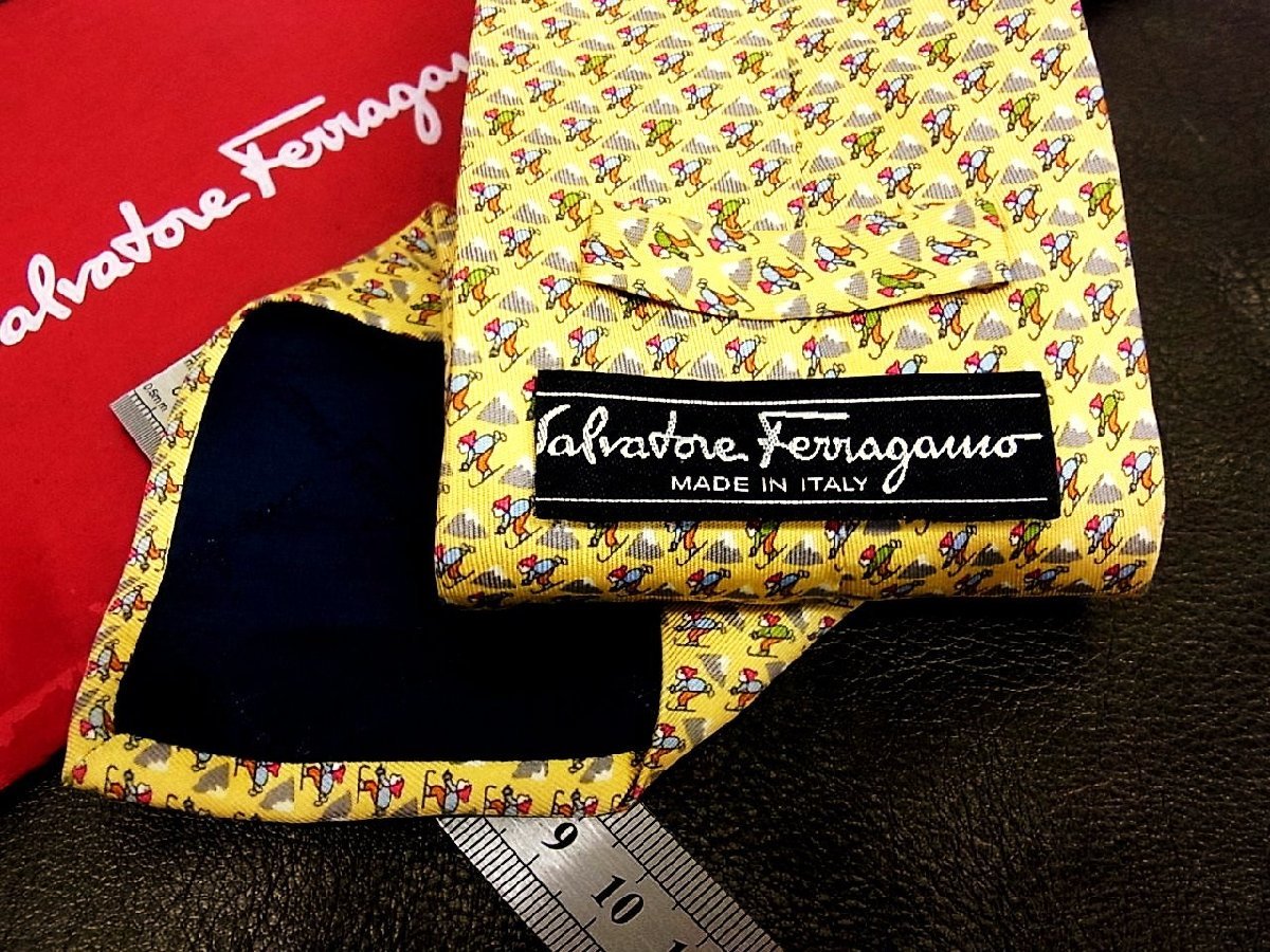 ★並品★4R01485【Ferragamo】フェラガモ「スキー スポーツ 柄」ネクタイ