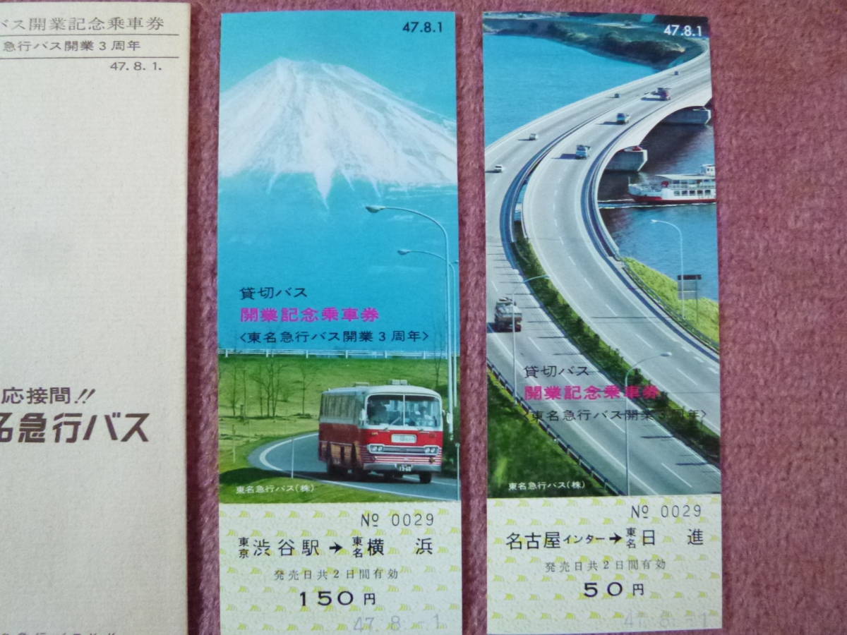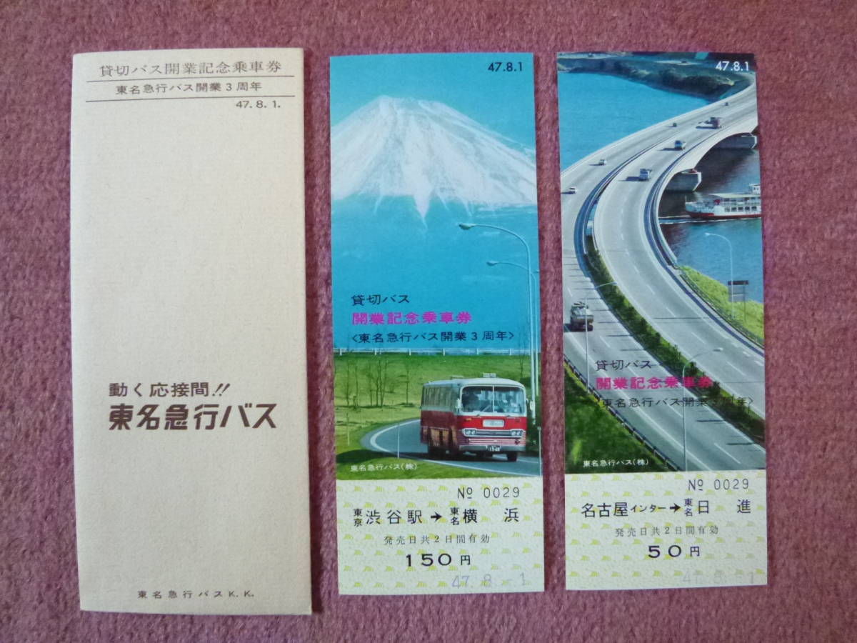 東名急行バス貸切バス開業記念/東名急行バス開業3周年記念乗車券2枚組です。