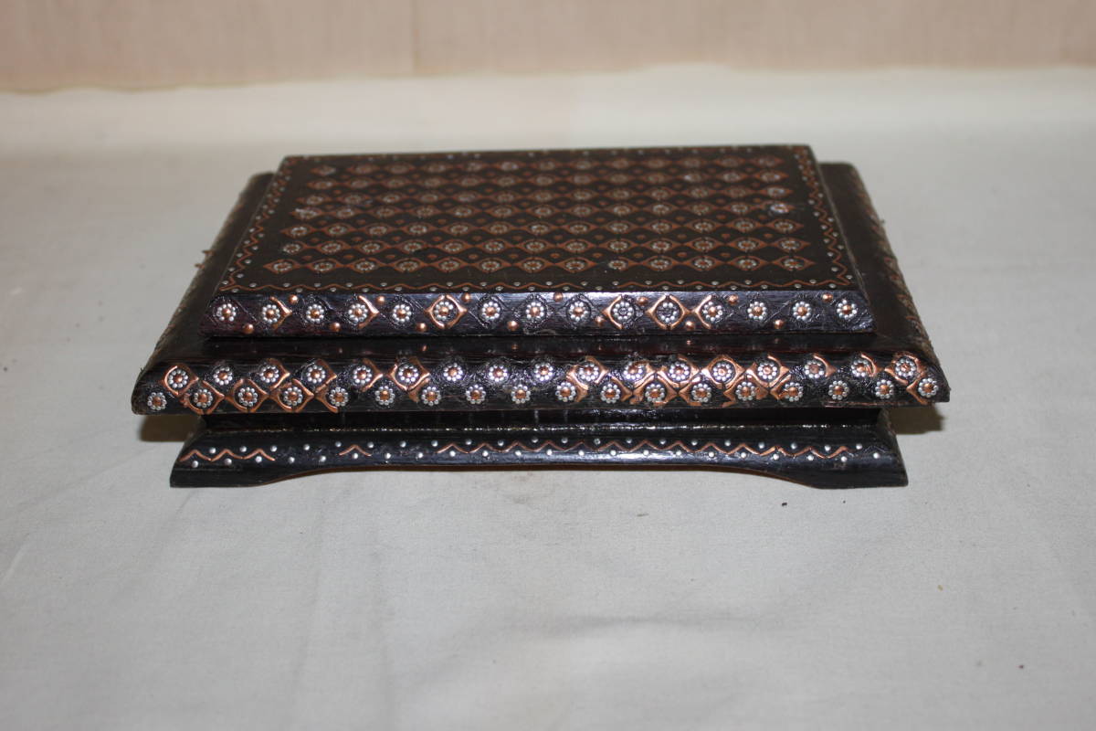 商品の説明 ★古い素敵なジュエリーボックス(宝石入れ)です。幾何学模様のレリーフが美しく、 お気に入りのジュエリー、アクセサリーを入れれば、開くたびに楽しい気分で一杯に なりそうです。 ★木製で大きさは約22×15×H5.2cmです。 ★古いもののため表面の擦れキズ等はありますが、目立つ損傷はありません。 写真から状態を判断いただき、アンティークと了解の上で入札お願いいたします。 ★当方、古いものを主体として出品させて頂いております。 点検は致しておりますが汚れや傷等の見落としがある場合がございます。 ご了承の上よろしくお願い致します。 ★発送詳細 ・佐川急便の予定です。 ★支払方法 ・Yahoo!かんたん決済 他にも色々出品しています。よろしかったらご覧になってください。