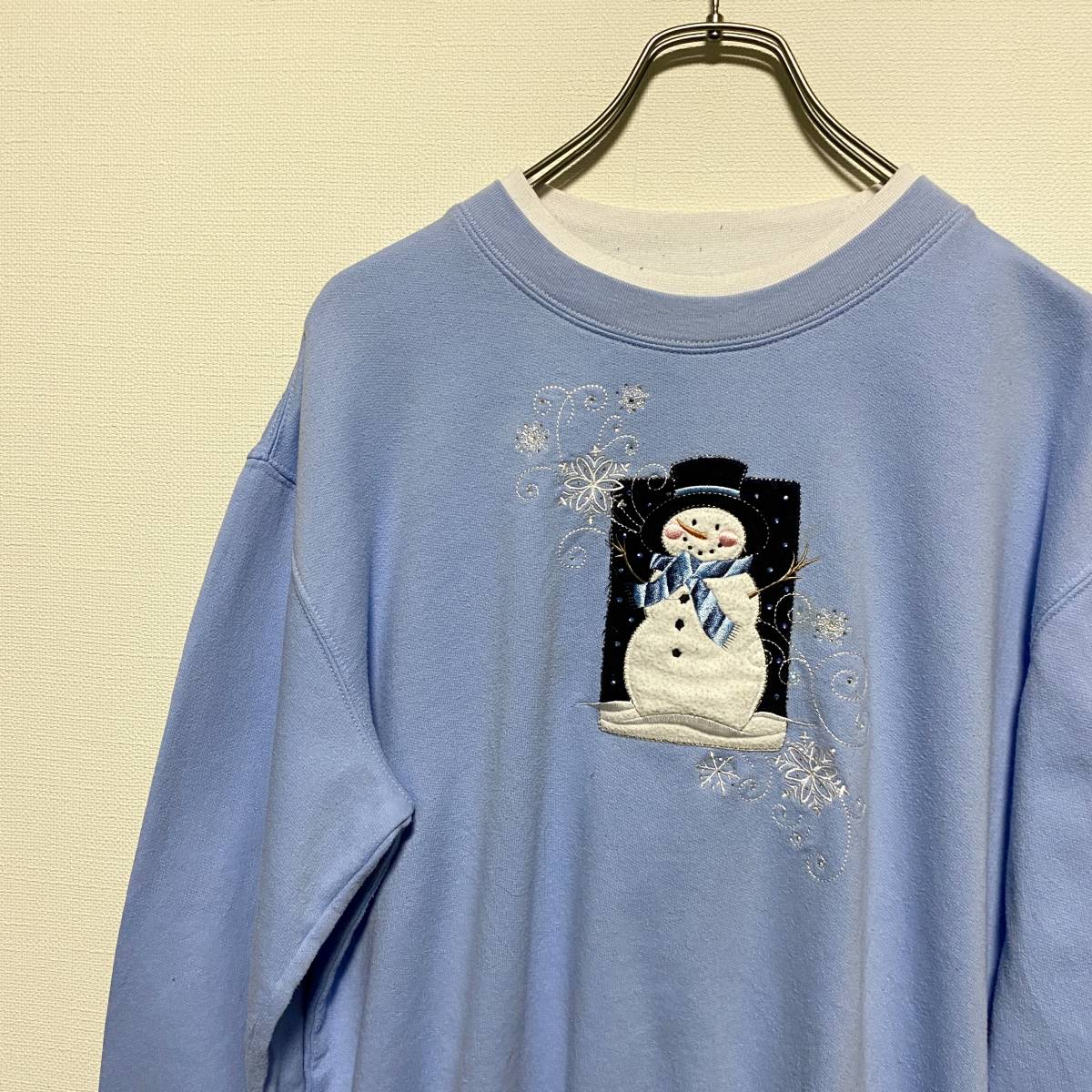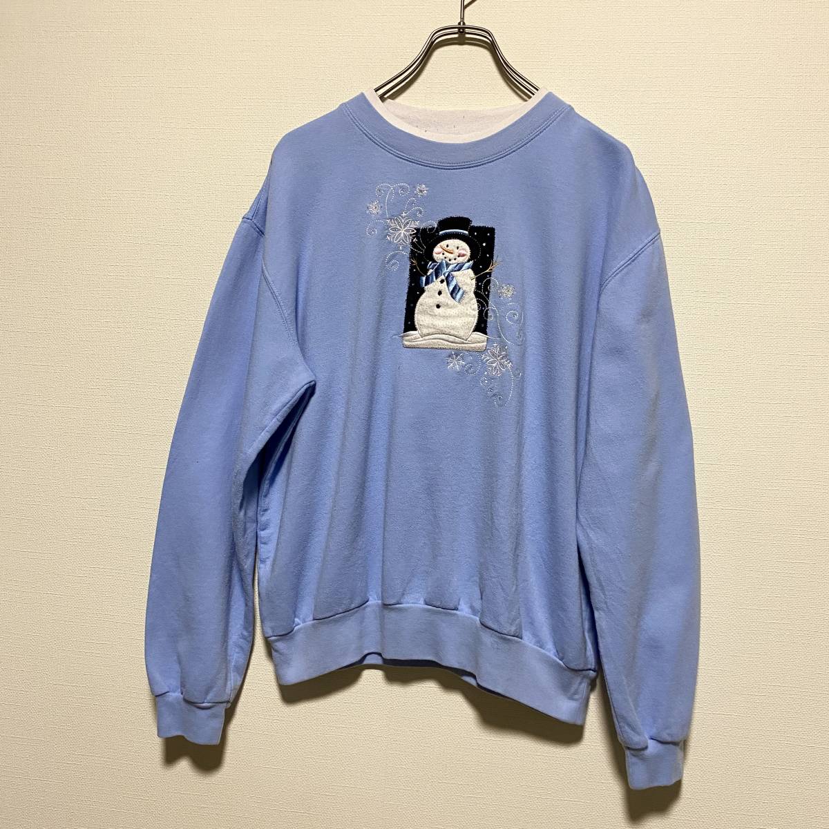 アメリカ古着 雪だるま トレーナー スウェット 刺繍 レトロデザイン ヴィンテージ ゆるふわ Mサイズ 【R84】