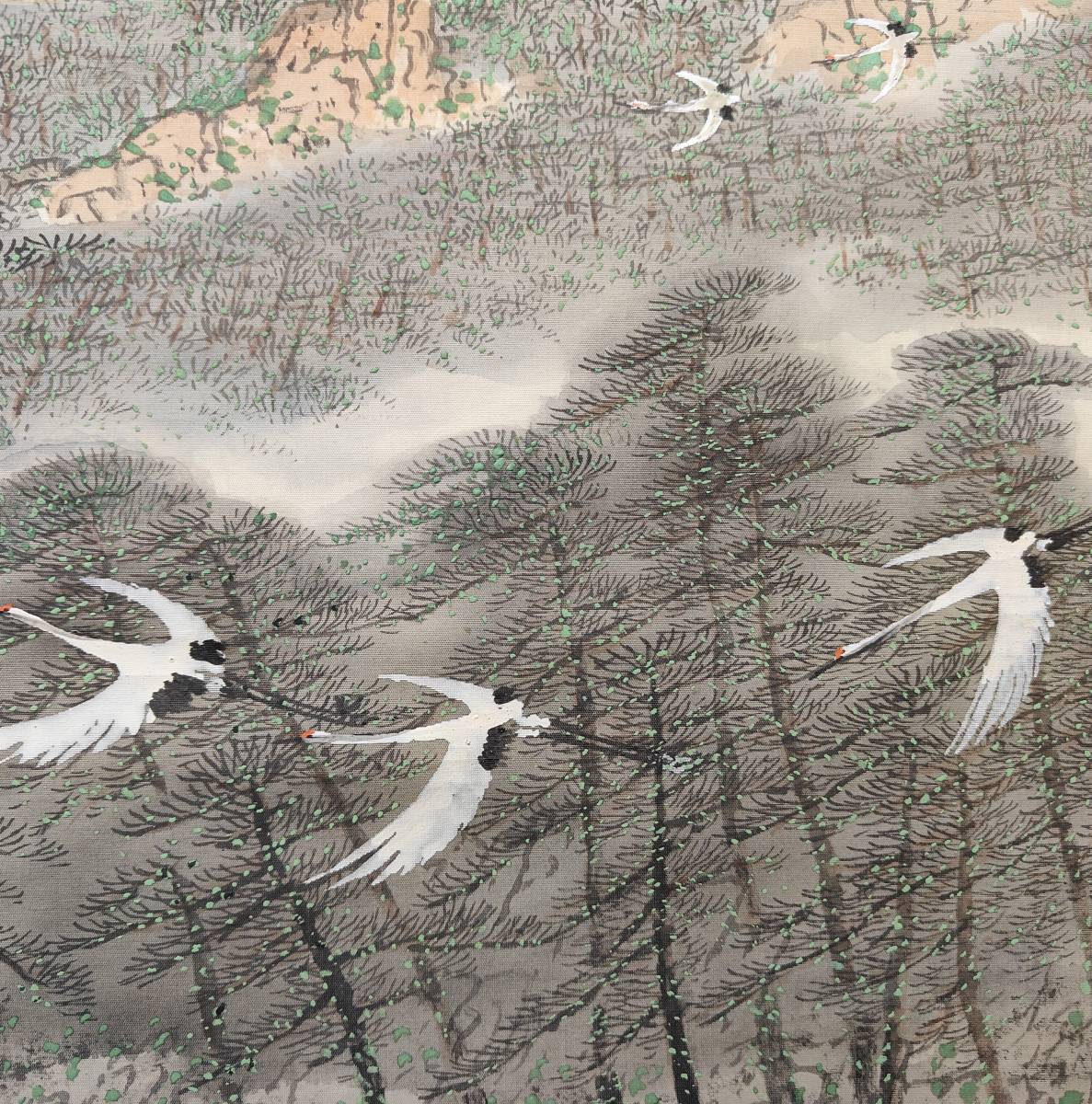 真作//小川鴻城/蓬莱山図/山水/鶴/桐共箱付/