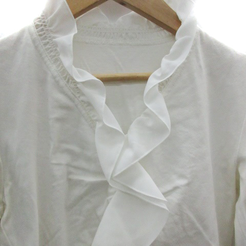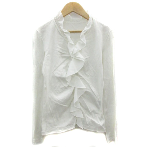 インディヴィ INDIVI ブラウス カットソー 長袖 Vネック フリル 38 オフホワイト 白 /YM43 ■MO レディース