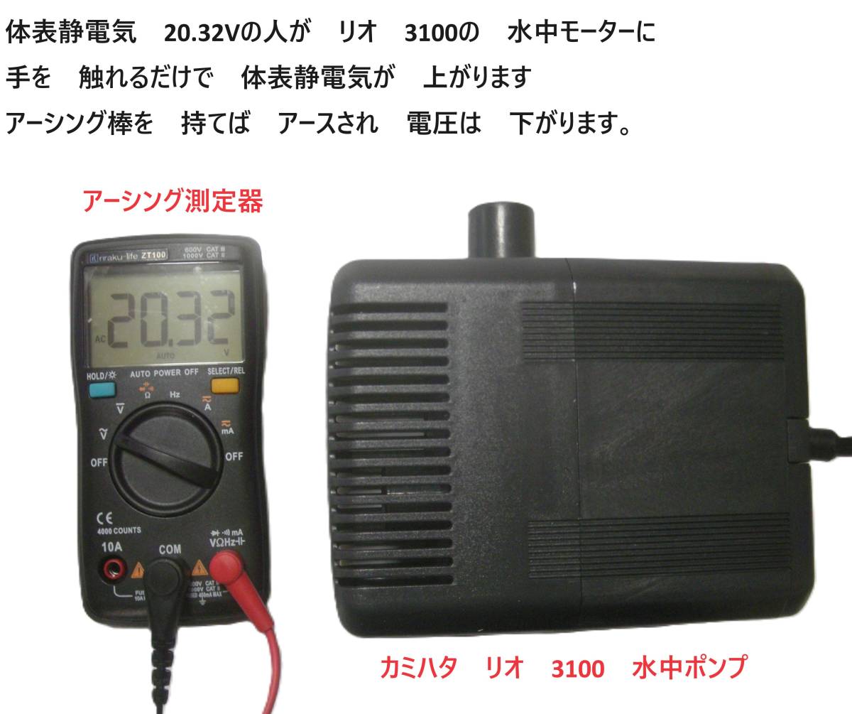 モーターなどからの 静電気で 魚は 帯電電圧が 上がり 帯電状態が 続くと