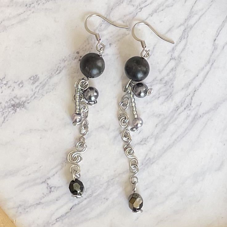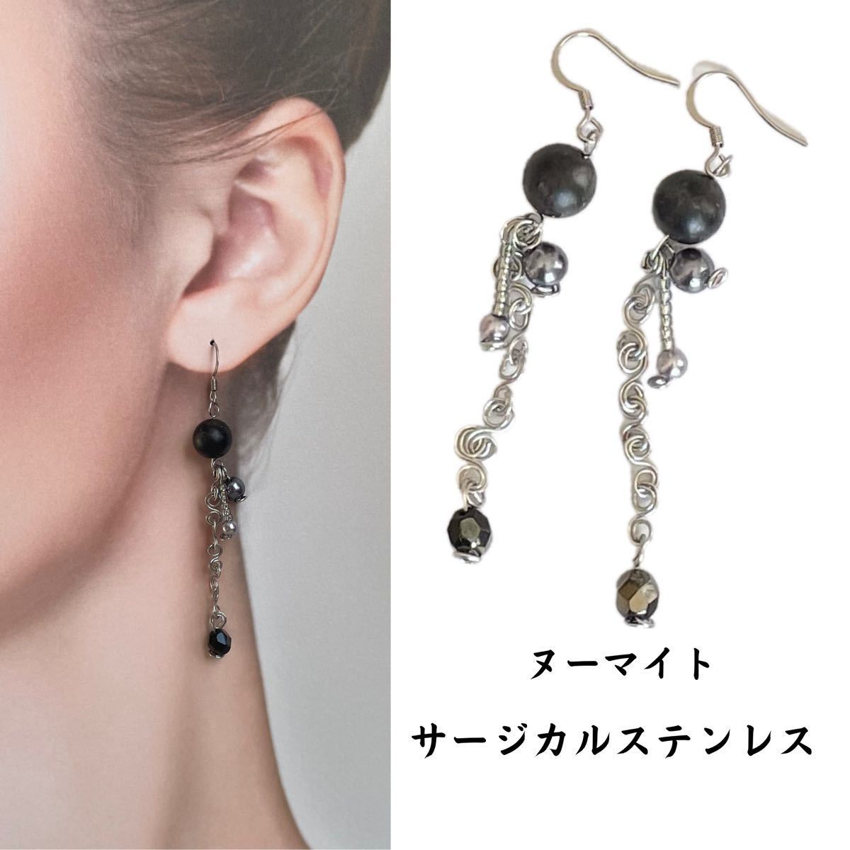 ハンドメイド、オリジナルデザインの天然石ピアスです。