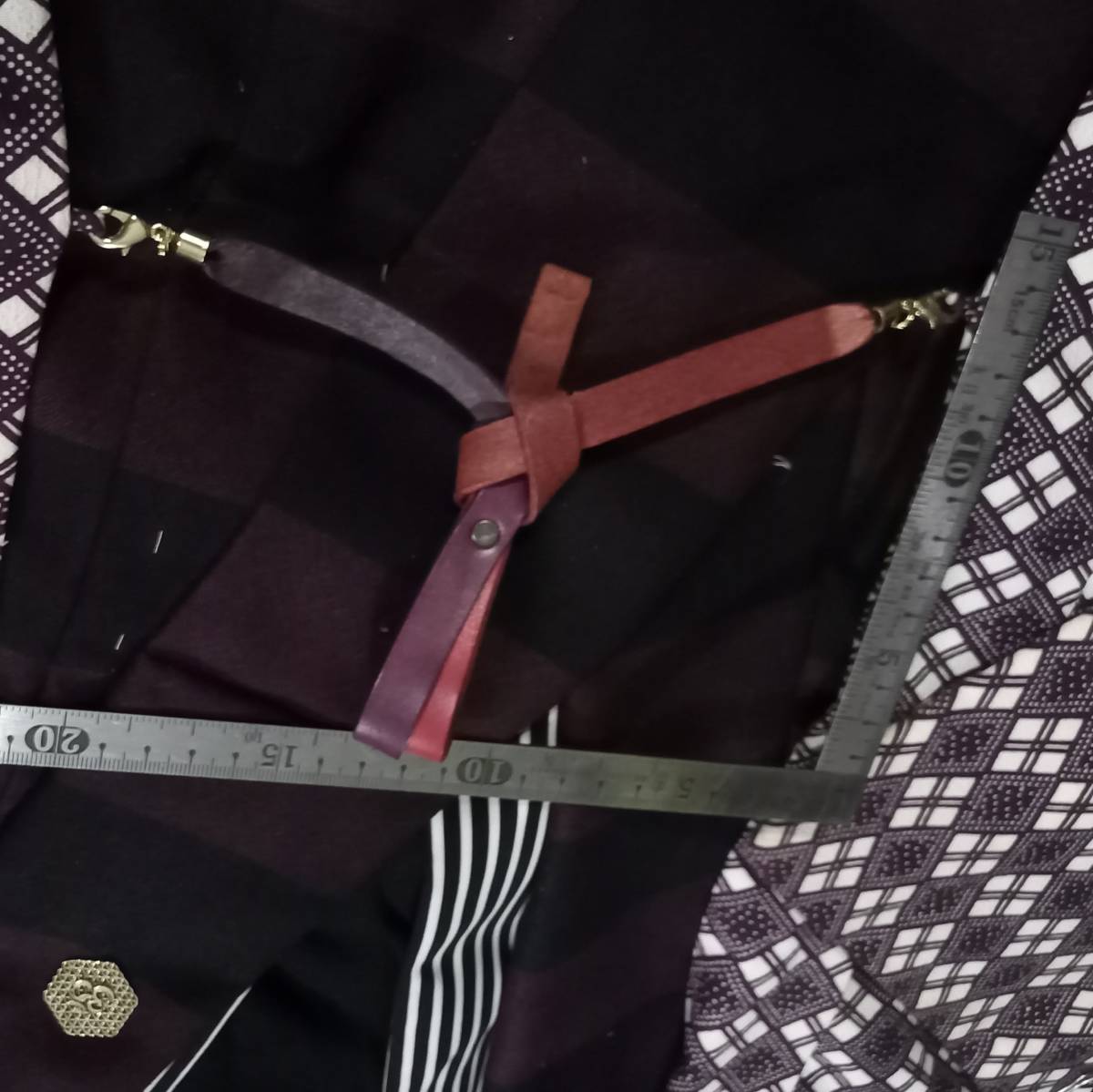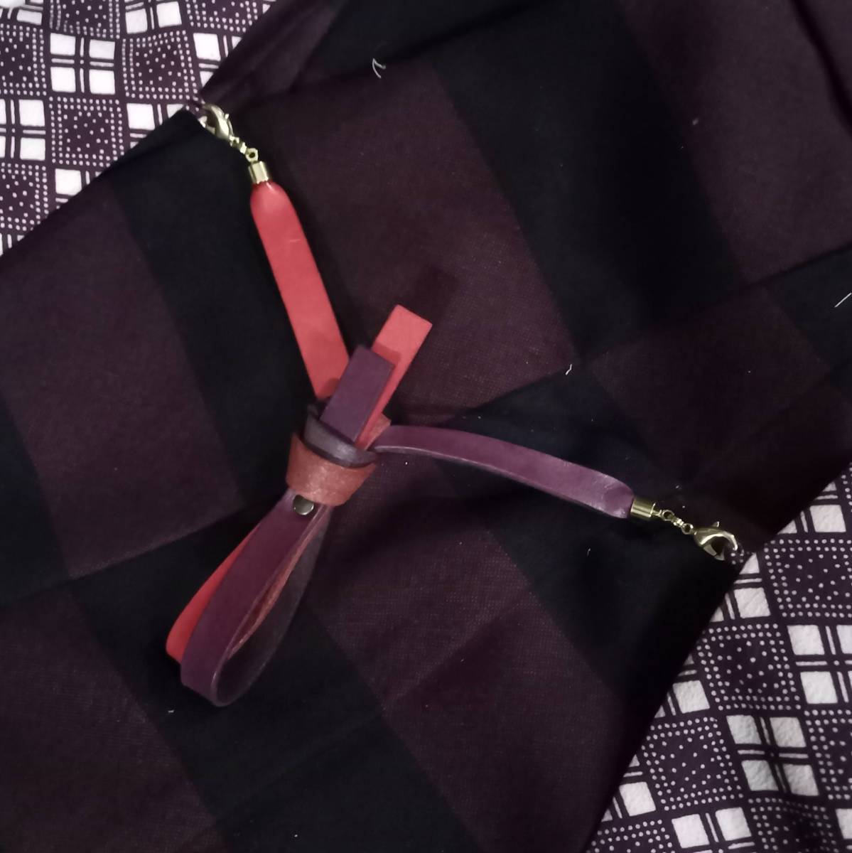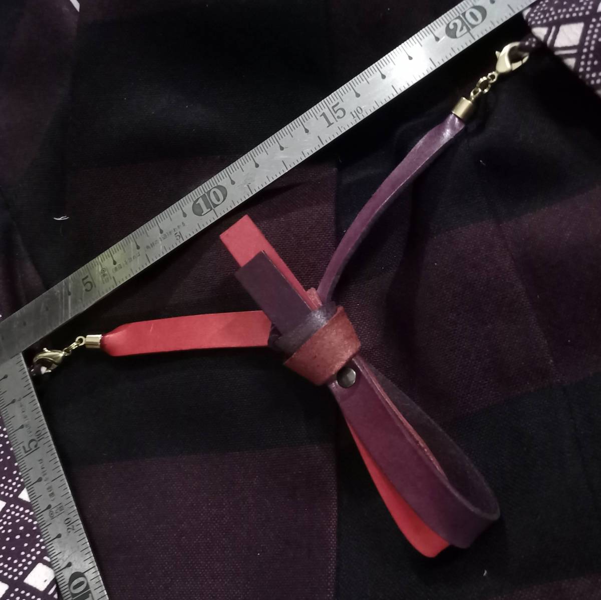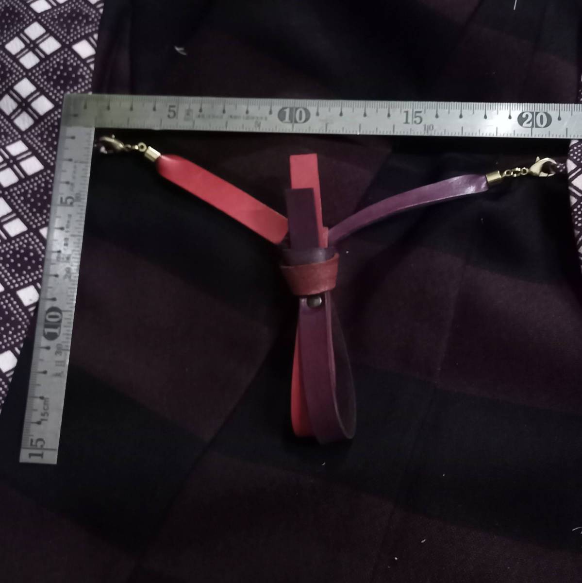 本革一重結び羽織紐 赤+紫染色レザー 着物や浴衣の羽織のワンポイントに!