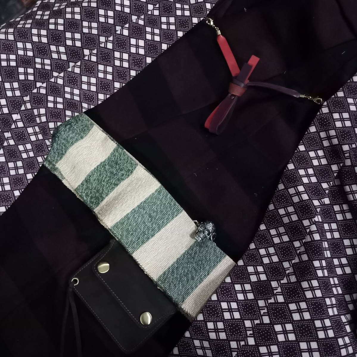 ※レザーの羽織紐以外の帯、帯留、羽織紐、着物などはコーディネート例となります。