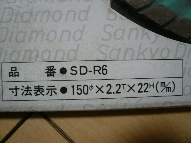三京ダイヤモンド工業 ダイヤモンドホイール スーパードライ SDカッター SD-R6 6インチ 150×2.2T×22H の未使用品です。