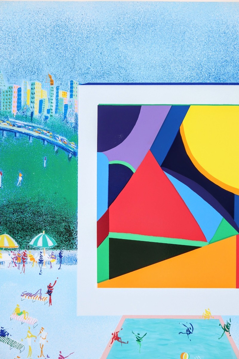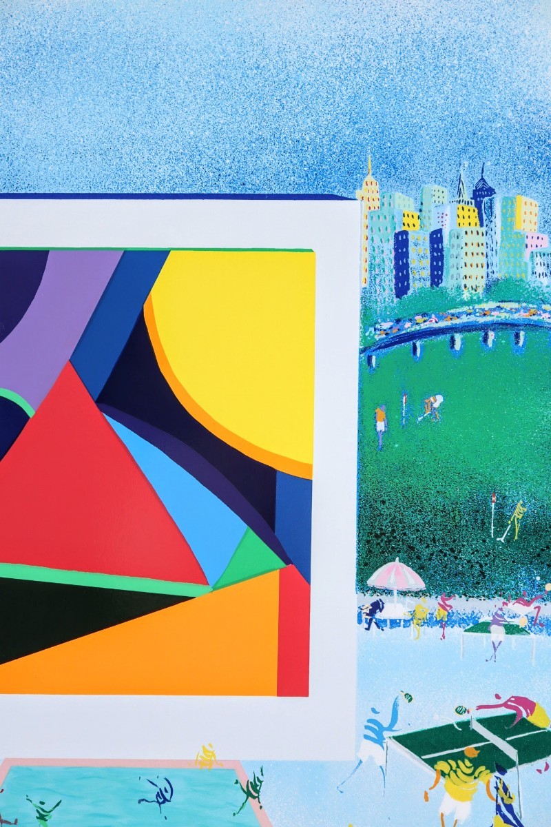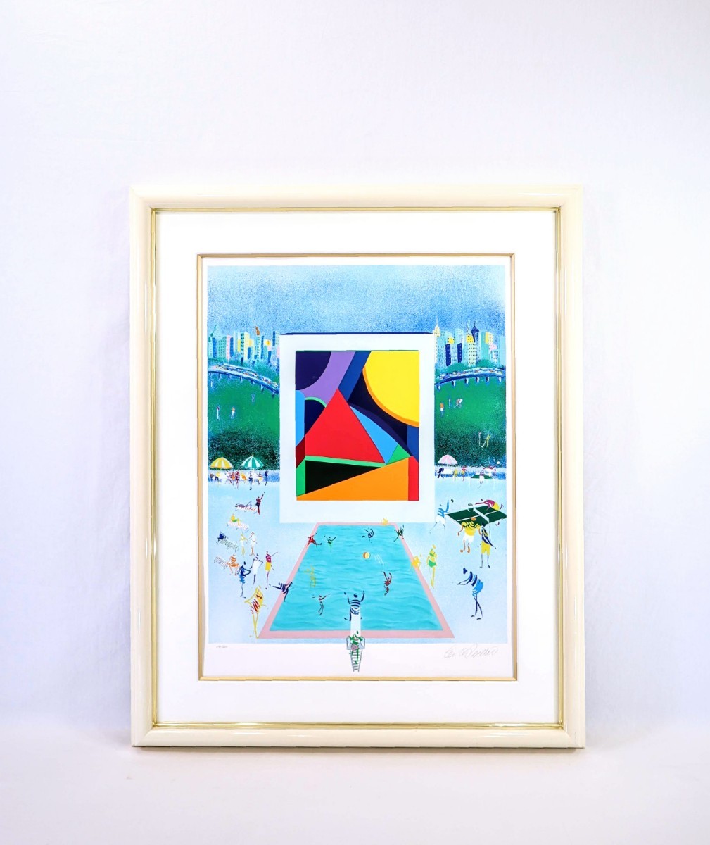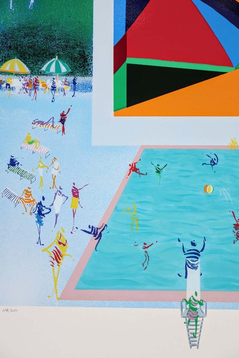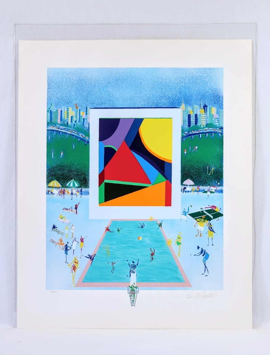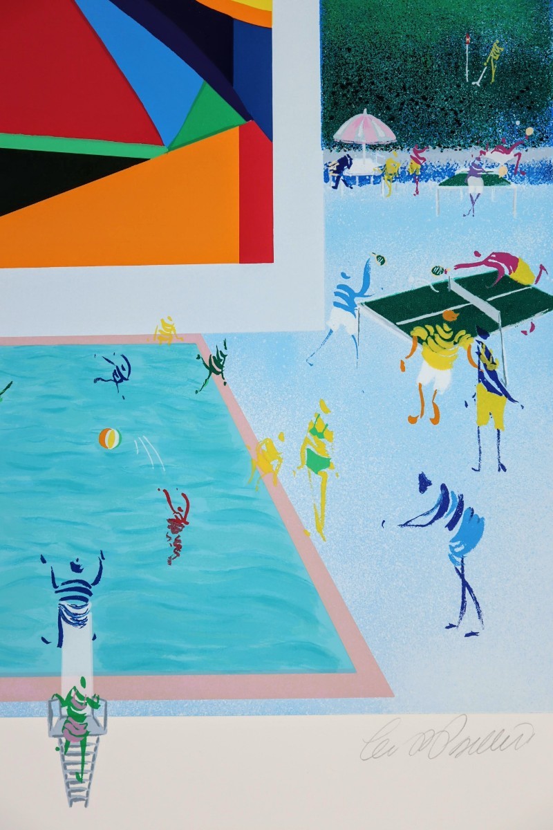 真作 レオ・パシリコ 2002年頃シルクスクリーン「カントリークラブ」画寸 48.5cm×61cm 米国人作家 独創的なスタイルで絵画業界注目 8450